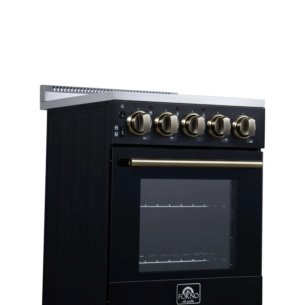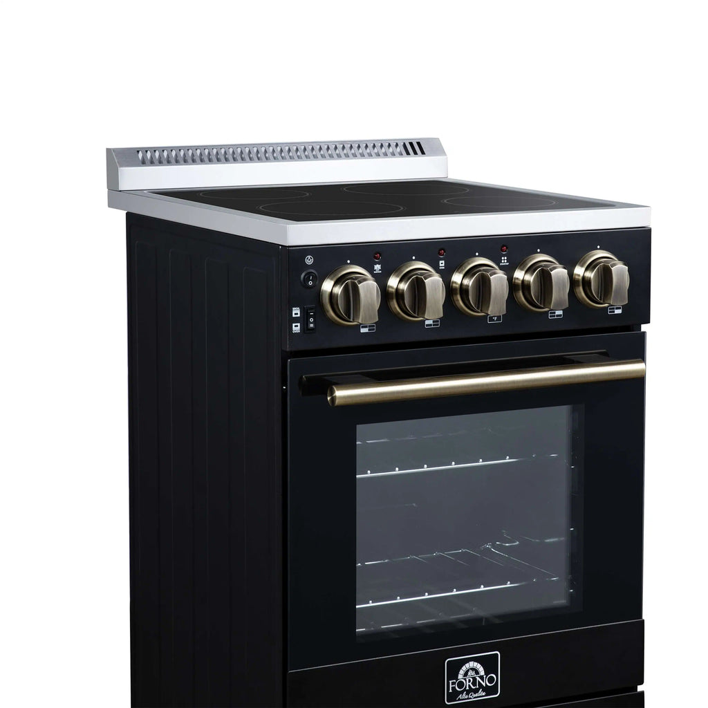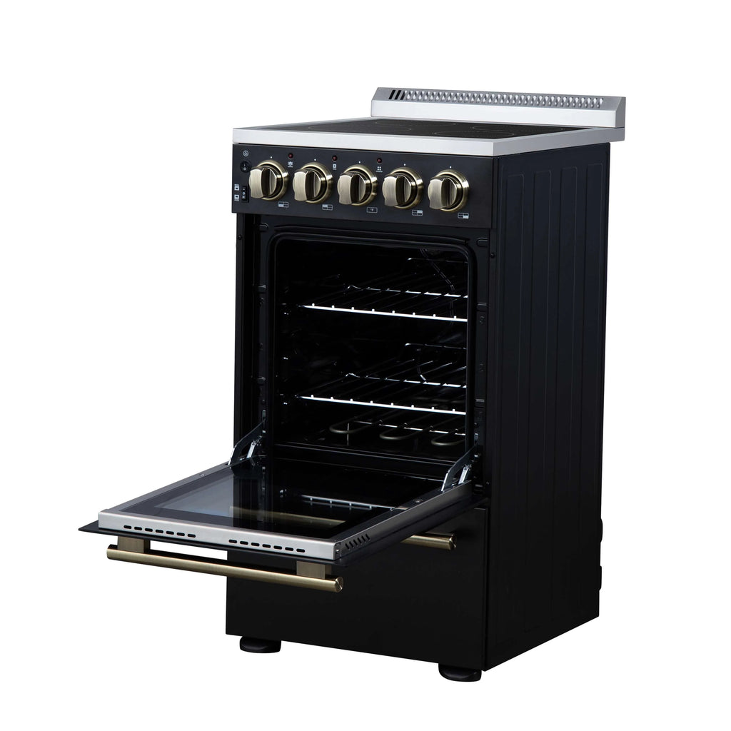 Forno Pallerano 20-Inch Freestanding Electric Range in Black with Antique Brass Trim (FFSEL6052-20BLK)