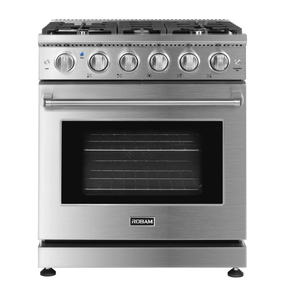 Experience professional cooking power with the ROBAM 30-Inch Gas Range (7GG11). Boasting up to 18,000 BTU on the cooktop and a high-performance oven featuring both broil and U-shaped burners, this range delivers exceptional heat for perfect searing, baking, and roasting. Its spacious 4.8 cu. ft. oven capacity lets you cook multiple dishes at once, making it ideal for any modern kitchen.