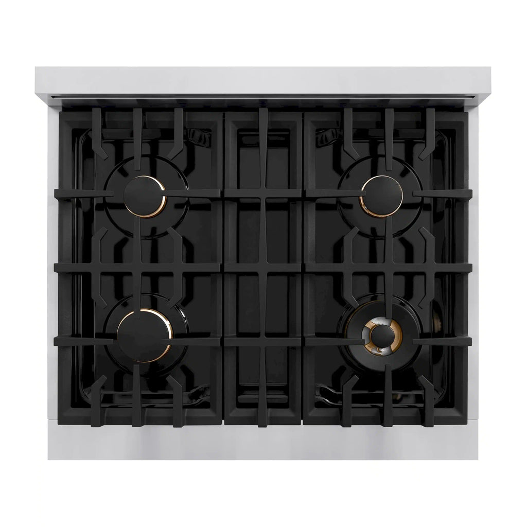 Luxury isn’t meant to be desired - it’s meant to be attainable. The ZLINE Autograph Edition 30 in. 4.2 cu. ft. Classic Dual Fuel Range with 4 Burner Gas Cooktop and Electric Convection Oven in Stainless Steel with Matte Black Accents (CDRZ-30-MB) combines the elegance of a hand-finished porcelain gas cooktop with 4 Italian-made auto-reignition burners, an electric convection oven with an energy-efficient cooling fan to ensure quiet operation, a Landscape oven door window design, and stunning matte black knobs and handle allowing you to master every meal. With a modern, timeless style and refined functionality, ZLINE Classic Dual Fuel Ranges are masterfully crafted to deliver an elevated culinary experience.