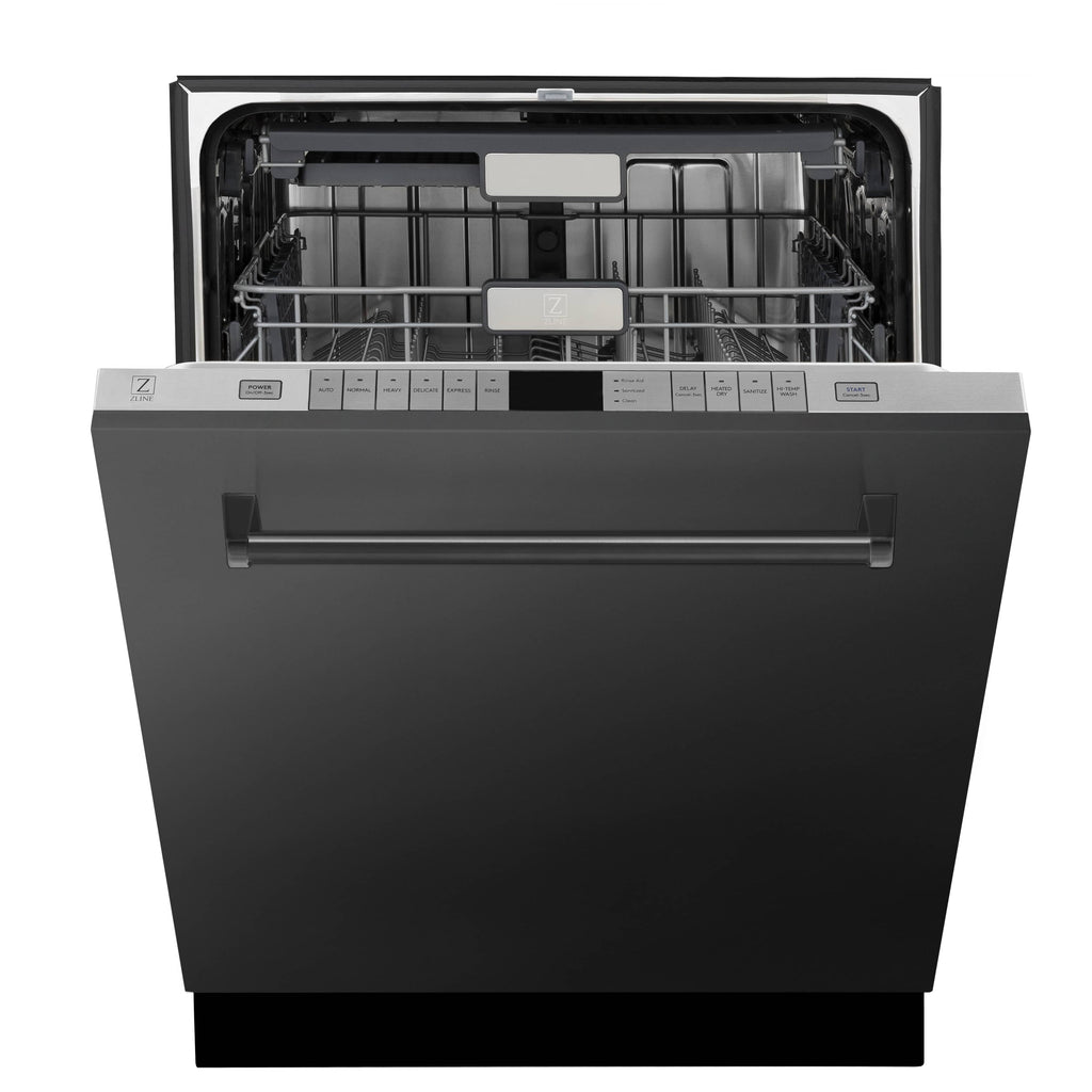 Designed in Lake Tahoe, USA, the ZLINE 24" Monument Series 3rd Rack Top Touch Control Dishwasher in Black Stainless Steel with Stainless Steel Tub, 45dBa provides a professional culinary experience by pairing unmatched performance with timeless style.