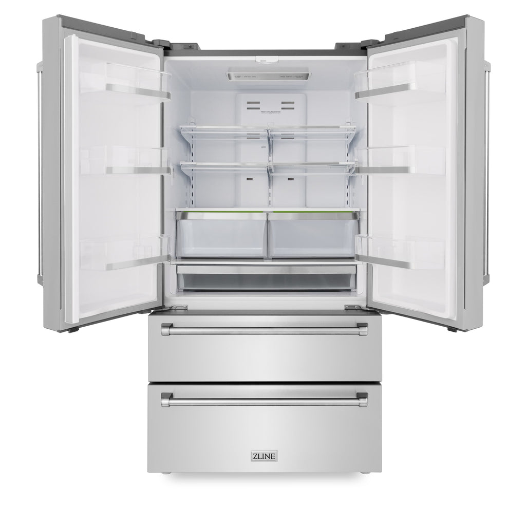 Luxury isn’t meant to be desired - it’s meant to be attainable. The ZLINE 36 in. 22.5 cu. ft. Counter-Depth French Door Refrigerator with Ice Maker in Fingerprint-Resistant Stainless Steel (RFM-36) delivers an elevated experience by pairing innovative dual cooling technology with a spacious counter-depth design and a high-capacity built-in ice maker. Achieve ZLINE Attainable Luxury® excellence with timeless features designed to enhance your kitchen’s capability.