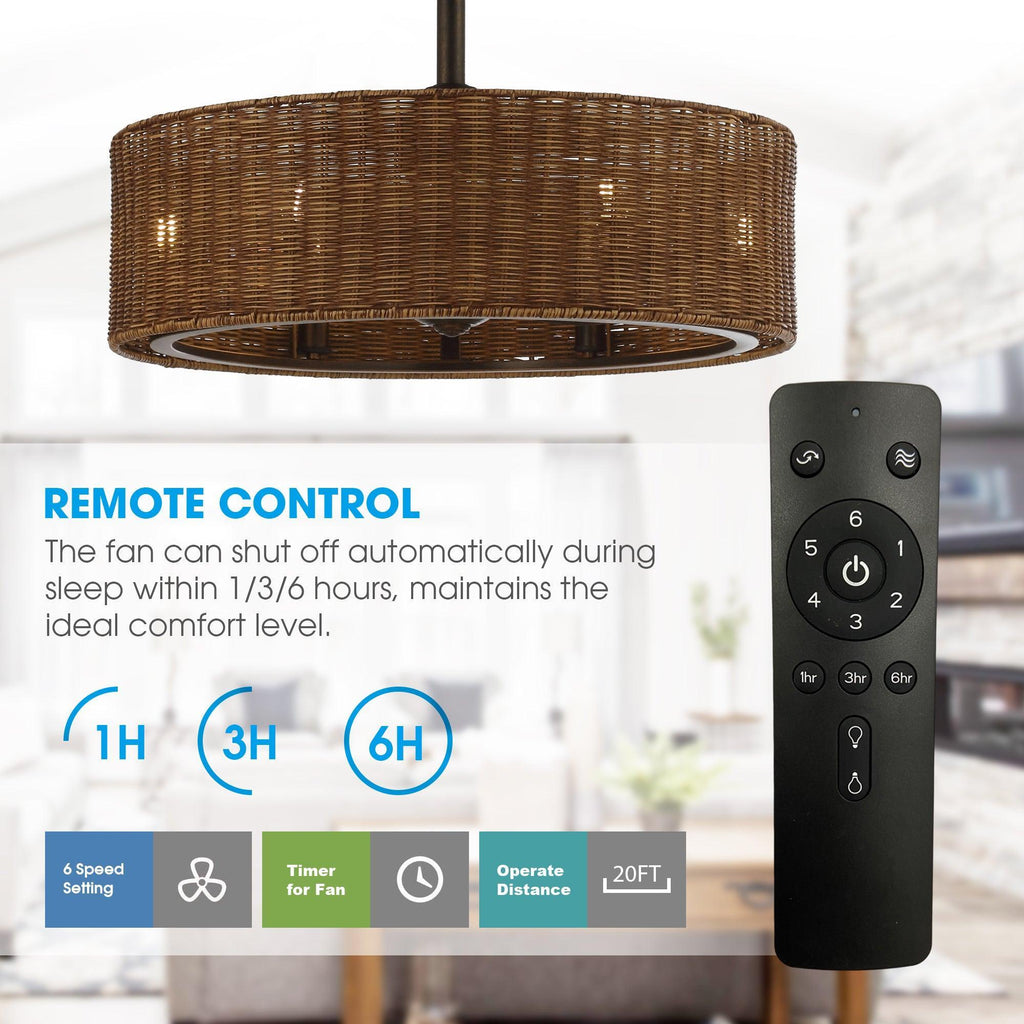 This whole body adopts two colors - antique Bronze and rattan color cage fan with special craftsmanship to show the ancient rattan texture. This 24-inch fandelier ceiling fan features a cleverly decorated cage design. Equipped with six Edison bulbs (not included), ancient rattan-style fans provide ambient, elegant lighting.