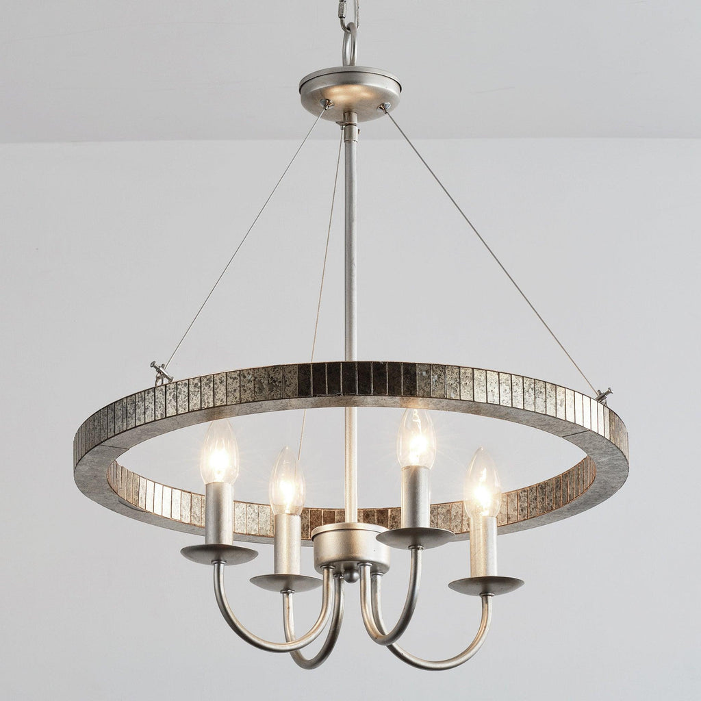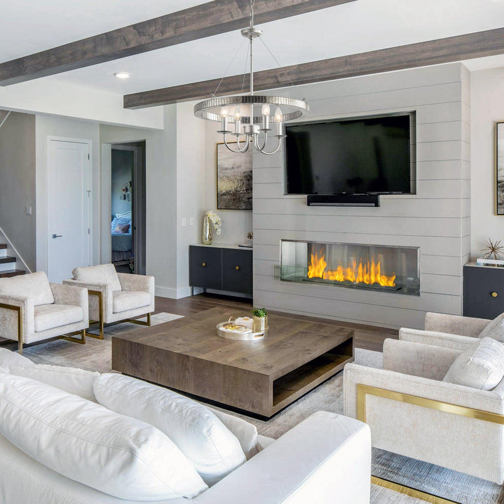 This statement chandelier defines your space with its classic design and ethereal glow. Evenly spaced acrylic lens ring coupled with 4 candle-shaped bulbs, a perfect harmony of artistic elegance and sophistication, adding brilliance to your space with its timeless design and contemporary style. It can also meet your daily lighting needs.