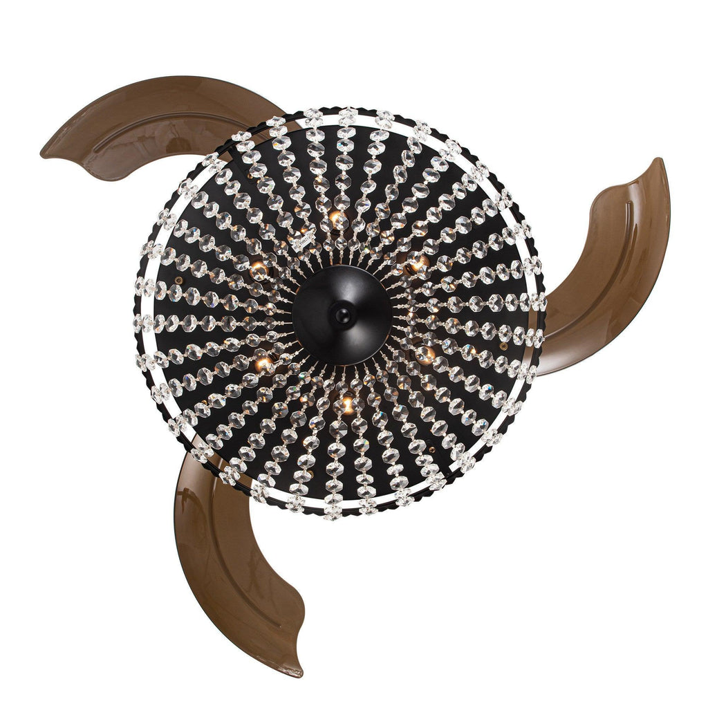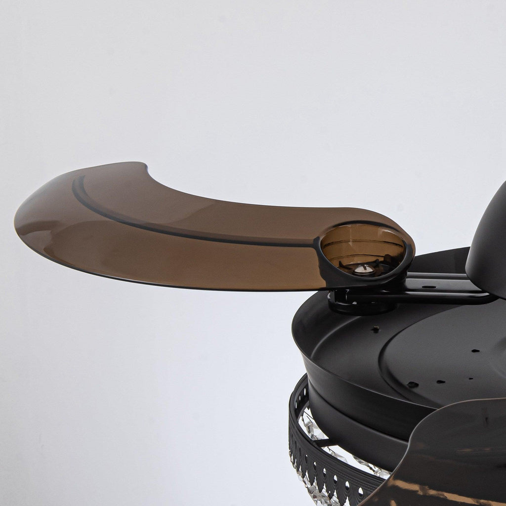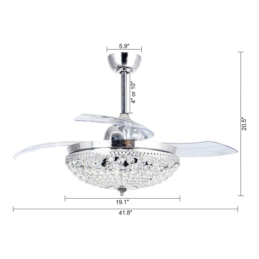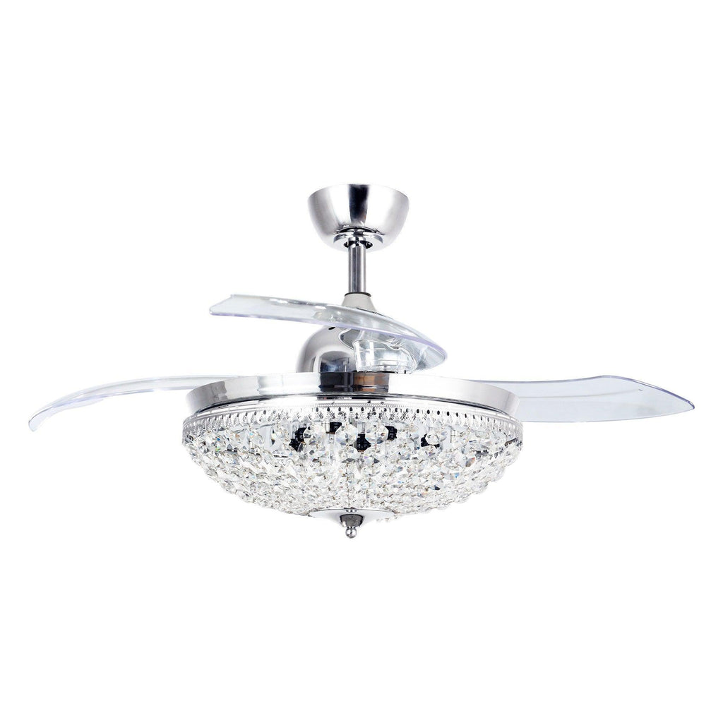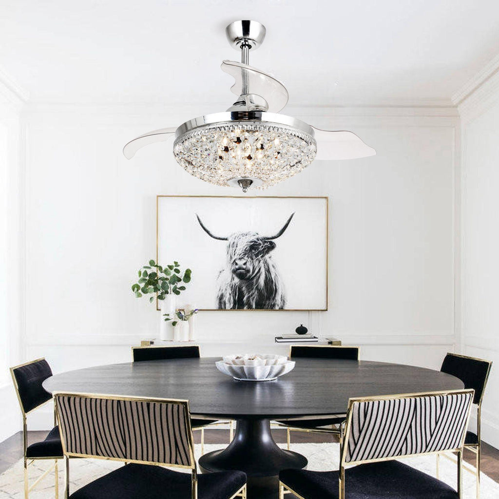 It is a combination of a retractable ceiling fan and a crystal chandelier. When switched off, the intrusive fan blades automatically retract and conceal, visually the unit transforms into a slim, modern chandelier.