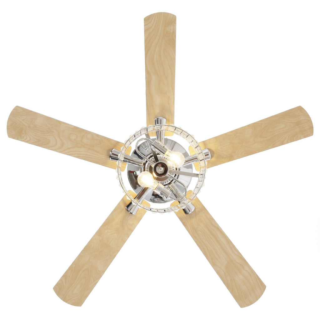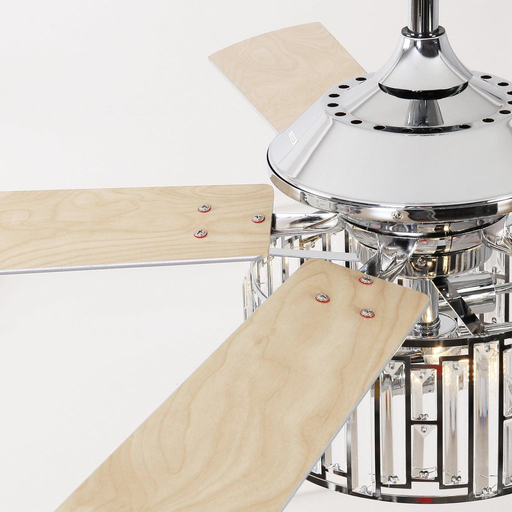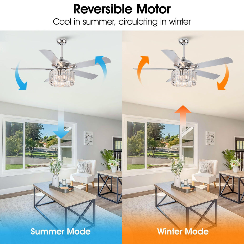 This lighted chandelier ceiling fan is a stylish and energy-efficient choice for maintaining a cool environment. Moreover, it serves as the perfect solution for your cooling and lighting needs. The full crystal shade not only brings a touch of grandeur to your home that is rarely seen in such a practical package, but also matches seamlessly with the black-toned wood blades. These blades are capable of moving large volumes of air, effectively cooling your space in the summer. However, the fan's functionality doesn't end with the warm weather. The manual reversal feature makes this fan versatile, ensuring not only cool rooms in the summer, but also helping to keep them warm in the winter. Therefore, this lighted chandelier ceiling fan offers a unique combination of elegance and practicality for your home.