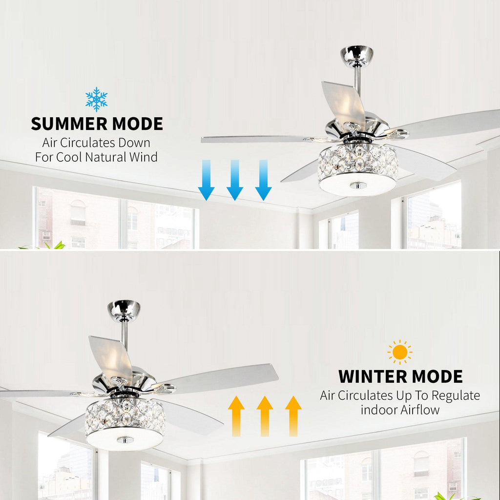 These ceiling fans are the most cost-efficient option for bringing the temperature down and moving stale air out of your room.This lighted chandelier ceiling fan is the perfect solution for your cooling and lighting needs. A full crystal shade combines to fill your home with a grandeur rarely found in such a functional package. The matching silver-stained wooden blades move
