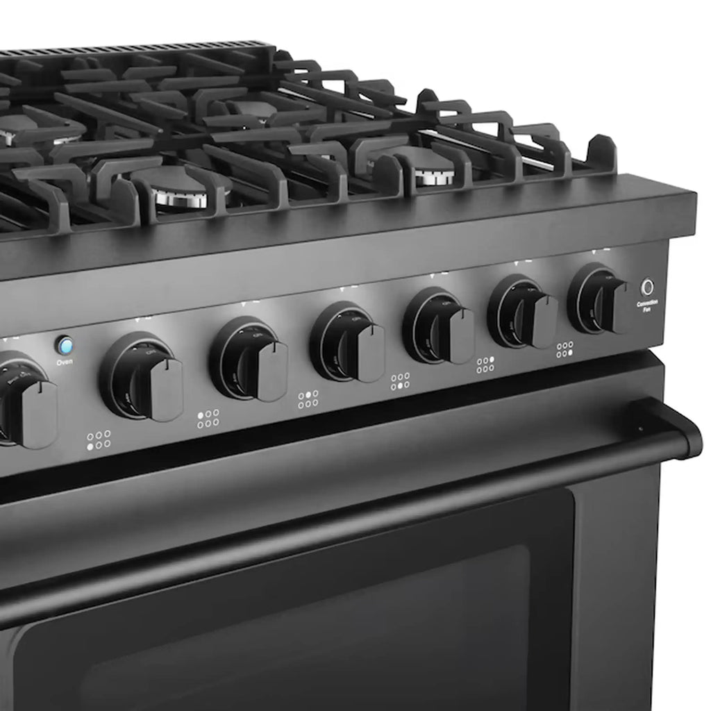 Our special oven functions give you the precision to create everything from juicy roasts to delicate desserts. Designed for durability, this 36 in. gas range is constructed with a matte black finish. A removable backsplash means this range is suitable for either freestanding or slide-in installation. The Cosmo Haven Collection brings enhanced functionality and design, offering a well-rounded option for those looking for more convenience and style in an appliance.
