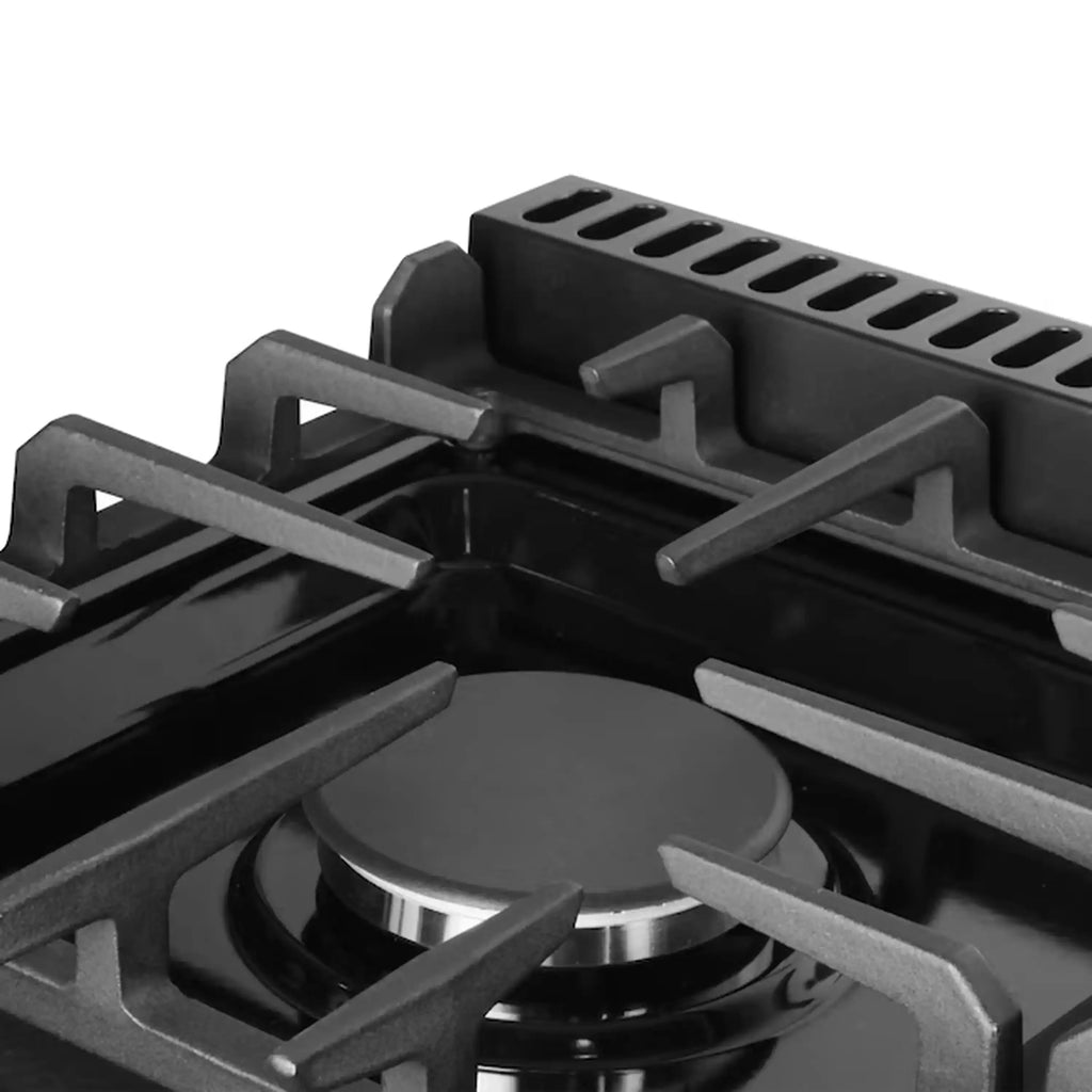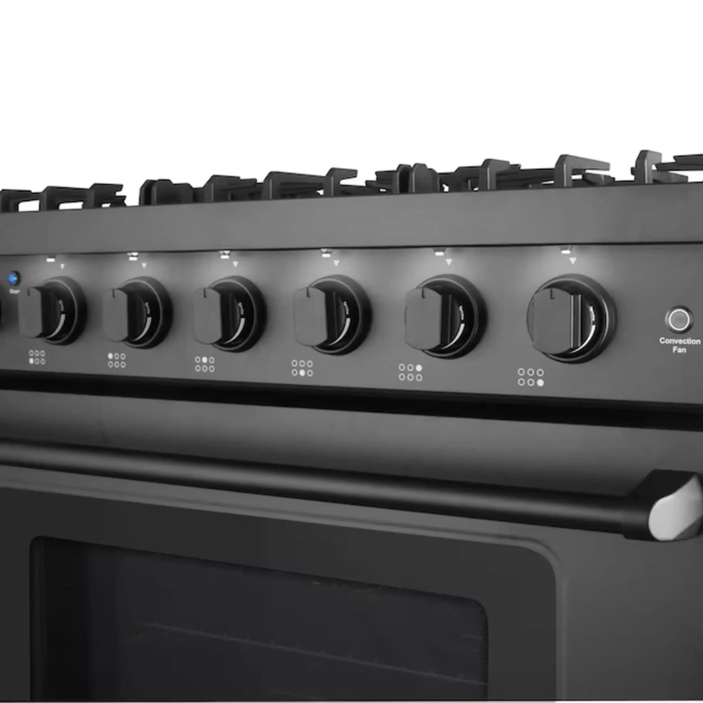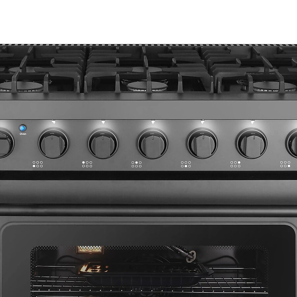 Cosmo’s COS-EPGR366-BK 36 in. gas range brings high end styling and quality into your home kitchen. The large 6.0 cu. ft. oven capacity lets you bake for a crowd and the gas cooktop with 6 sealed burners can handle all your pots and pans with ease. The cooktop is equipped with a variety of different burners to suit needs from the largest pots and pans down to the most delicate sauces: 2 x 18,000 BTU, 2 x 12,000 BTU and 2 x 9,000 BTU. In the rapid convection oven, powerful fans circulate air for fast, perfectly cooked meals every time.