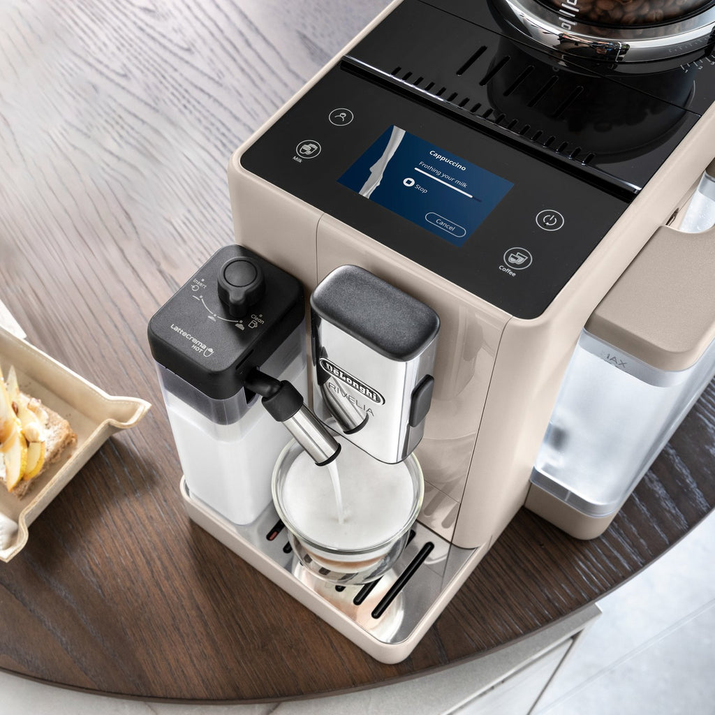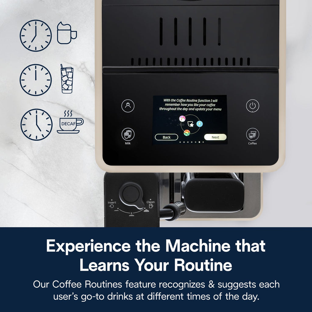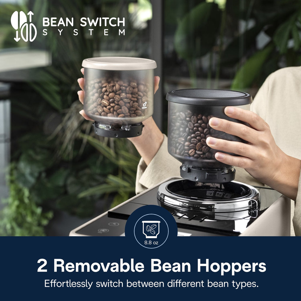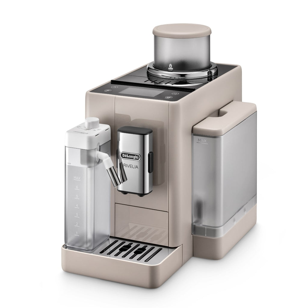 Your favorite drinks are just a touch away—grind, dose, brew and froth in style with the Rivelia fully automatic espresso machine. This compact, award-winning design invites you to easily and intuitively switch up your daily coffee routine with ease and customization—from instantly swapping between bean types, to tailoring your brew to your bean, to learning and storing your individual preferences for you and three other users for the perfect drink, to custom colors to bring out your personality in the kitchen. It all starts with the innovative Bean Switch System: interchangeable bean hoppers that enable you to explore worlds of coffee flavor by swapping one fresh bean type for another without missing a beat. Go from a robust dark roast in the morning to a light decaf latte or rich espresso martini later in the day. Then Rivelia’s Bean Adapt Technology becomes your personal coffee expert—helping you set and save each unique bean’s ideal grind, dose and temperature to ensure the perfect extraction every time. Guesswork: gone. Options: infinite. Rivelia’s fully automatic LatteCrema Hot System takes all the fuss out of frothing. There’s no messy steam wand or complicated manual control. With just the touch of a button, you can easily froth milk or plant-based alternatives directly into your cup to create steamy, creamy lattes, cappuccinos and other specialty drinks with ease. And with four distinct user profiles, smart menus that update throughout the day based on your coffee routine and a 3.5-inch color touch display featuring an expansive menu of hot and cold recipes, coffeemaking at home is transformed from a daily to-do to a delightful moment that can match any mood, with any bean, any drink, at any time of day. With the Rivelia and its modern minimalist design that’s more décor than appliance, the power to switch and personalize your coffee experience at home is at your fingertips.