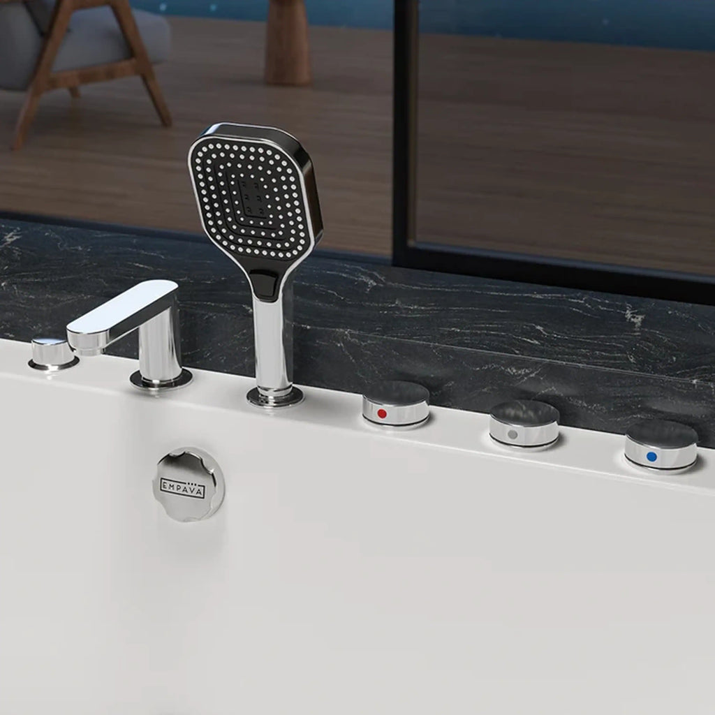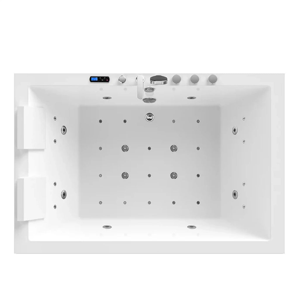 Transform your bathroom into a private spa with this 71-Inch Alcove Dual Massage Whirlpool Inline Heater 2-Person Bathtub with Center Drain.