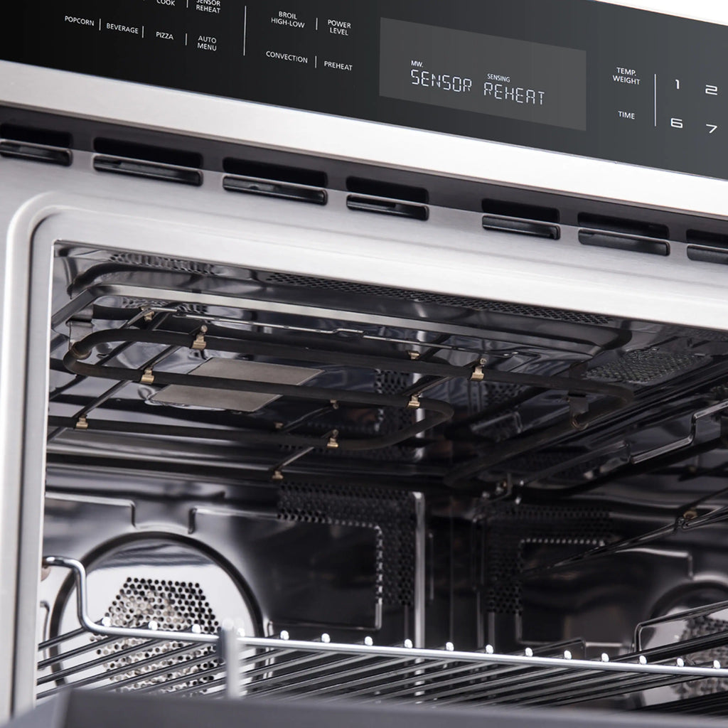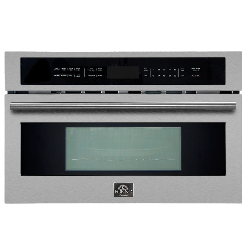 The Forno Oliena a stylish and practical 30-Inch 1.6 cu.ft. Microwave & Convection Oven. Its stainless-steel interior makes cleaning a breeze, while the easy-to-use controls let you seamlessly switch between microwave and oven functions. With 1,000 watts of cooking power, you can boil water in just 1 minute and 50 seconds using standard microwave settings.