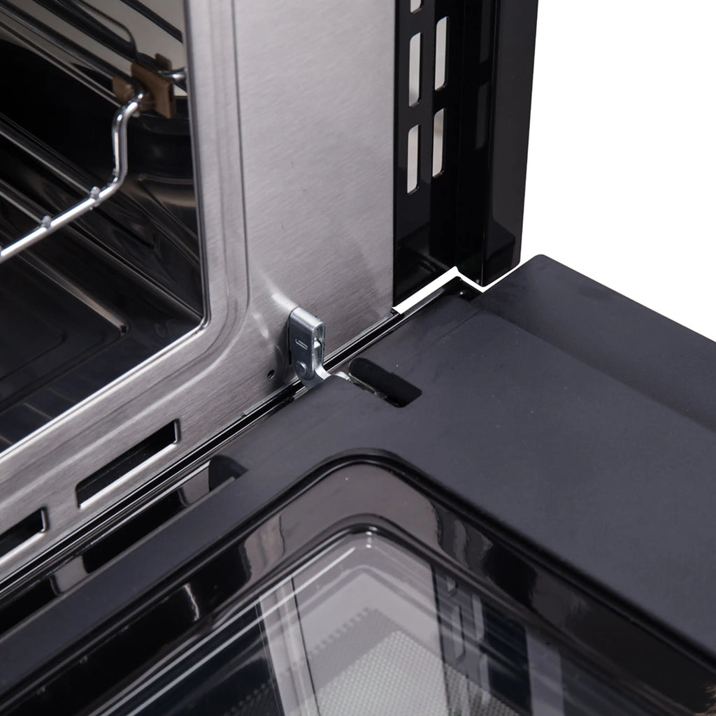 The glass touch controls and LCD display make it simple to navigate through various microwave modes like defrost, popcorn, beverage, sensor cooking, or auto menu. In oven mode, enjoy the versatility of true convection at 1,700 watts, along with a broil function of 1,750 watts and a bake element of 600 watts perfect for cooking individual dishes without having to use the main oven. Plus, the Rapid Preheat mode reduces waiting times, ensuring your meals are ready faster. Experience convenience and efficiency with our multi-functional microwave and convection oven combo.