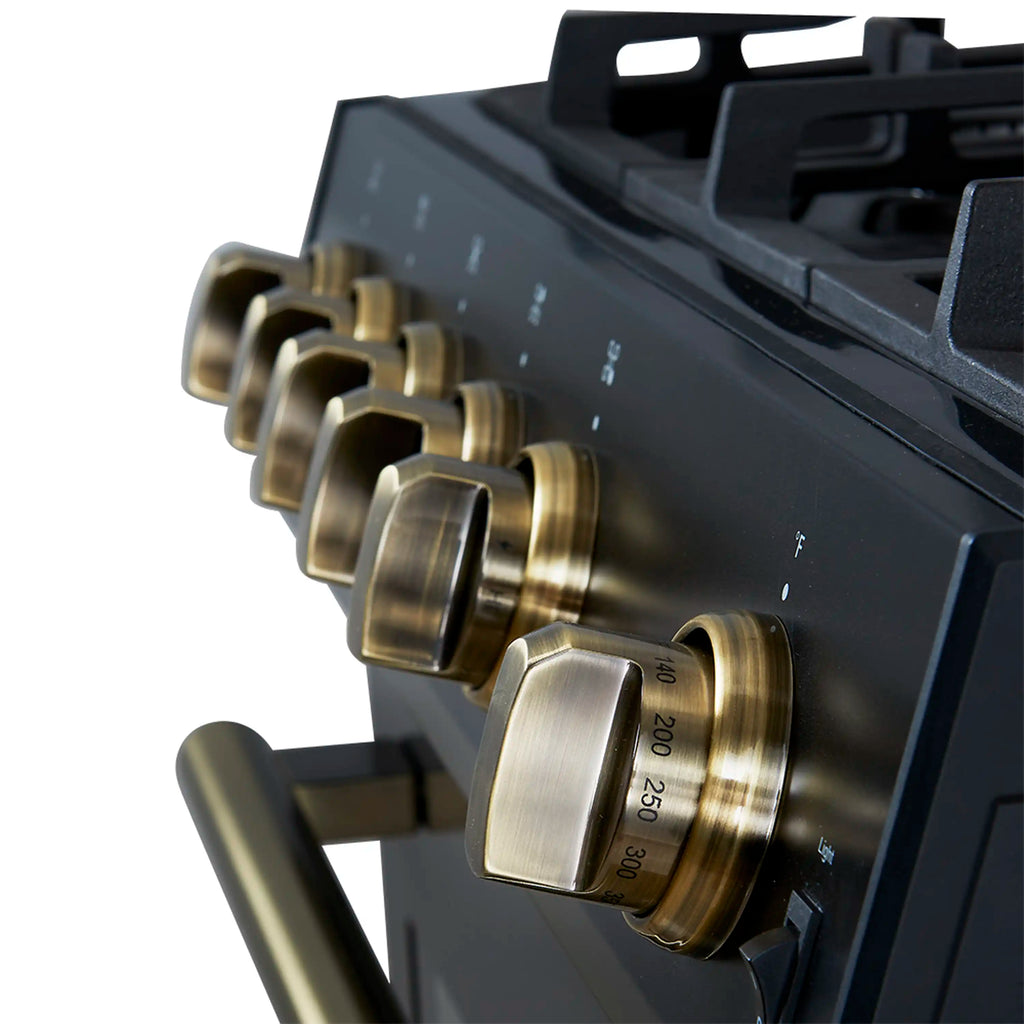 Customize your gas range effortlessly with our supplementary set of antique brass handles and knobs, adding a touch of sophistication to your unit and kitchen space. Safety is our priority, with the auto re-ignition feature ensuring reliable performance every time. Plus, with natural gas compatibility and an included conversion kit for propane, adaptability is at your fingertips, offering flexibility to suit your needs. This range caters to all cooking needs with its powerful cooktop and versatile oven, delivering quality and performance without the high price tags. Lower your cost of living with Forno.