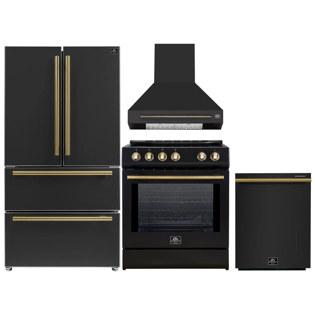 The FORNO Leonardo Espresso 30-Inch Black Induction Range elevates your cooking experience with a perfect blend of style, functionality, and reliability. Featuring a sophisticated black finish, this unit includes knobs and handles in both antique brass and stainless steel, allowing you to customize your kitchen decor. Experience the efficiency of our powerful 8,100-watt induction elements, designed to deliver optimal cooking performance. The 5 cu.ft. convection oven boasts a high-performance convection fan and a broil and bake output of 3,500 watts. With two oven racks at your disposal, explore endless culinary possibilities with ease. The speckled blue enamel interior guarantees consistent heat absorption and retention, ensuring every dish is cooked to perfection. Effortless operation is ensured by friction-resistant hinges, while the hidden bake element prevents spills, simplifying maintenance. Skip the high price tags without sacrificing quality and performance. Lower the cost of living with Forno.