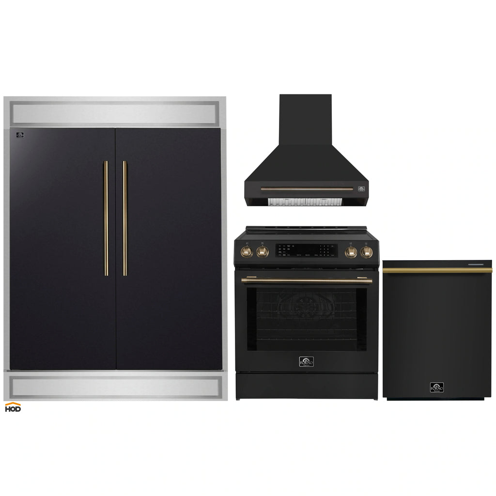 The Forno Donatello 30-inch black induction range harmonizes functionality with the precision of induction cooking. Customize your look effortlessly with two sets of interchangeable handles and knobs, switching between antique brass for a traditional touch or stainless steel for modern flair. The cooktop boasts four powerful induction elements totaling 8,100 watts, ensuring fast and precise cooking. The 5.0 cu.ft. speckled blue enamel oven features two racks with six adjustable levels, enabling versatile cooking for multiple dishes simultaneously. With Air Fry functionality, achieve crispy and delicious results effortlessly for healthier cooking options. This range caters to all cooking needs with its powerful cooktop and versatile oven, delivering quality and performance without the high price tags. Lower your cost of living with Forno.