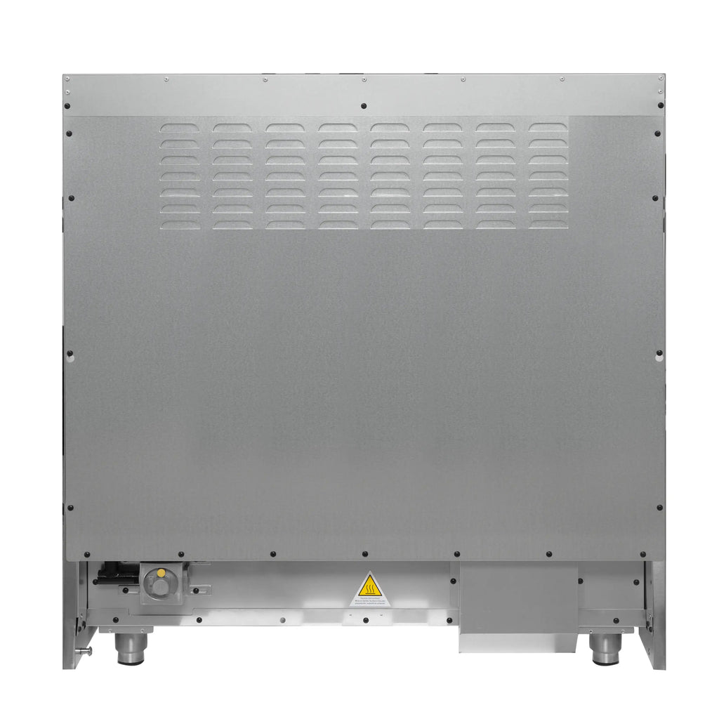 The Forno Galiano 36" Dual Fuel Range in sleek black with antique brass knobs and handles combines timeless style with high performance. Six sealed burners deliver 83,000 BTU total output, including a 20,000 BTU dual-ring burner for precise simmering at 1,000 BTU. The 5.36 cu.ft. true convection fan oven ensures even baking with a powerful 6,300-watt output. Black enamel interiors enhance heat distribution and are easy to clean, while smooth friction hinges and a 3-layer glass door ensure safety and durability. Adjustable stainless steel legs fit counters from 36" to 37". Includes 2 heavy-duty racks, a NEMA 14-50P power cord, and LP conversion kit. Backed by Forno’s 2-year in-house warranty for lasting peace of mind.