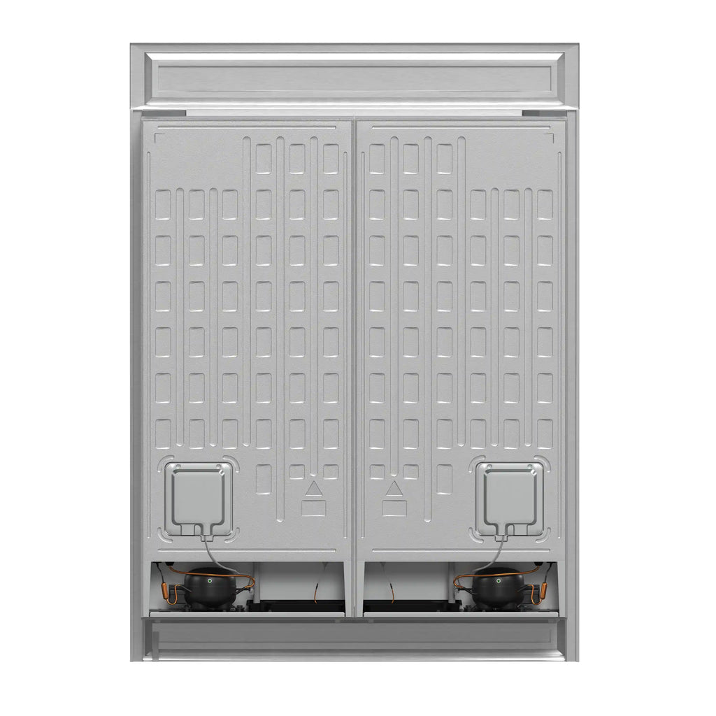 The Forno Maderno combines two 28 Inch refrigerators with decorative trim grille, extending to a 60 Inch width for a built-in appearance, harmoniously blending style with convenience. This combo offers ample storage space totaling 27.2 cu.ft. They feature customizable cooling with convertible function and total no frost technology, eliminating tedious defrosting.