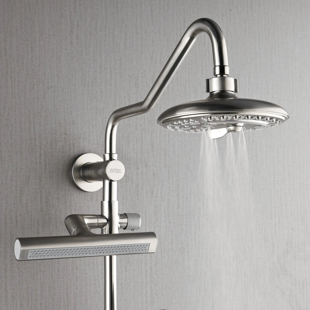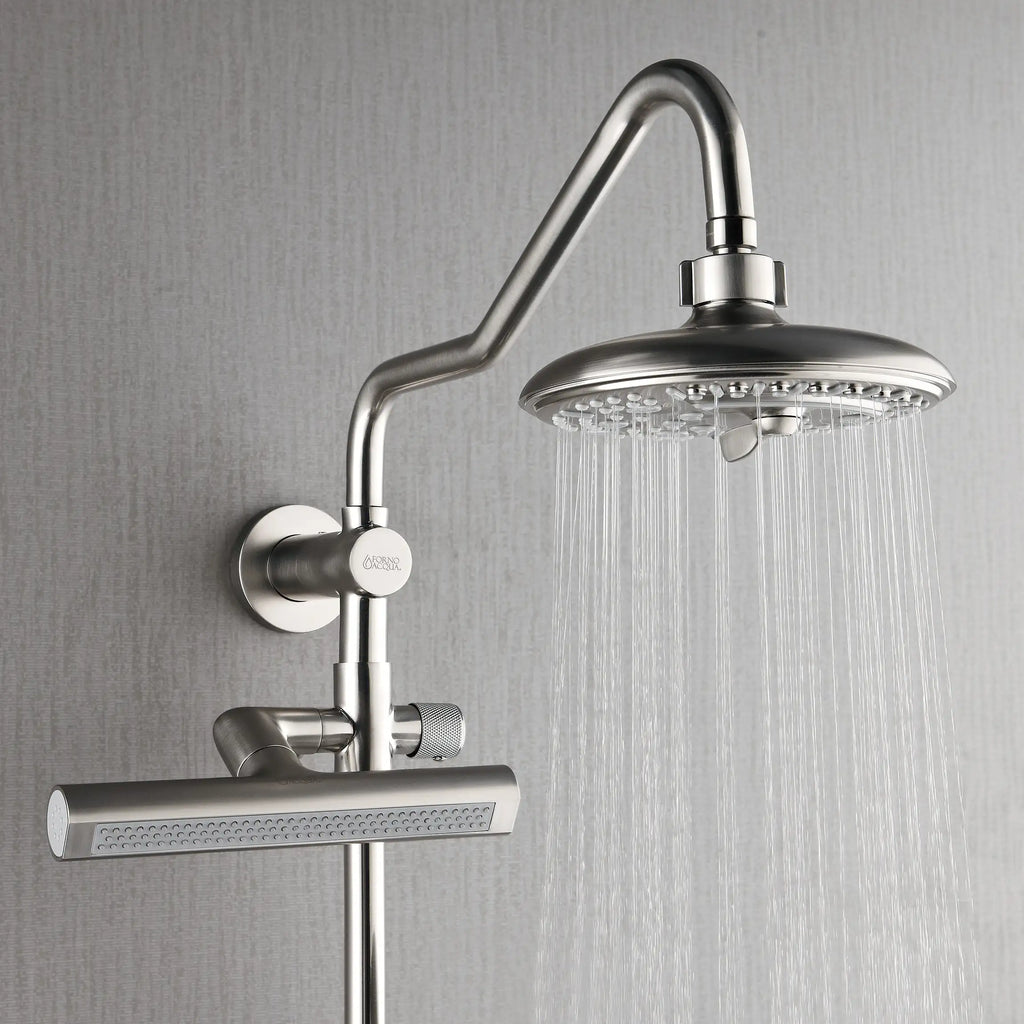 Transform your daily routine into a spa-like escape with the FORNO ACQUA AcquaSPA Shower Column with AcquaFALL, where performance meets Italian-inspired design. This 3-in-1 wall-mounted system features a U.S.-patented rain shower head with 6 customizable spray modes, from gentle mist to revitalizing massage. At the heart of the experience is the AcquaFALL Waterfall Jet, a 10-1/2 in. adjustable water feature that delivers wide, soothing coverage or focused relief, ideal for melting away stress and refreshing sore muscles. A 5-function handheld shower with ergonomic grip and a height-adjustable sliding bar ensures flexibility for every user. Built for easy DIY installation with standard U.S. plumbing, the AcquaSPA System brings high-performance comfort and timeless elegance to any modern or transitional bathroom.