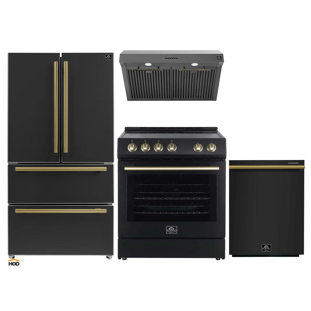 Introducing the Forno Leonardo Espresso 30" 5.0 cu. Ft. Black Electric Range, a kitchen game-changer. With Antique Brass accents, 4 Radiant Elements, and a 5,500-watt Convection Oven, it combines style with top-notch performance. Antique Brass Knobs and Handles add a touch of elegance, while Ceramic Glass ensures even heat distribution. The Hidden Bake Element simplifies maintenance by preventing spills and odors. Elevate your kitchen with this timeless, user-friendly range, marrying durability with sophistication. Cook with confidence, and embrace efficiency and style with every use.