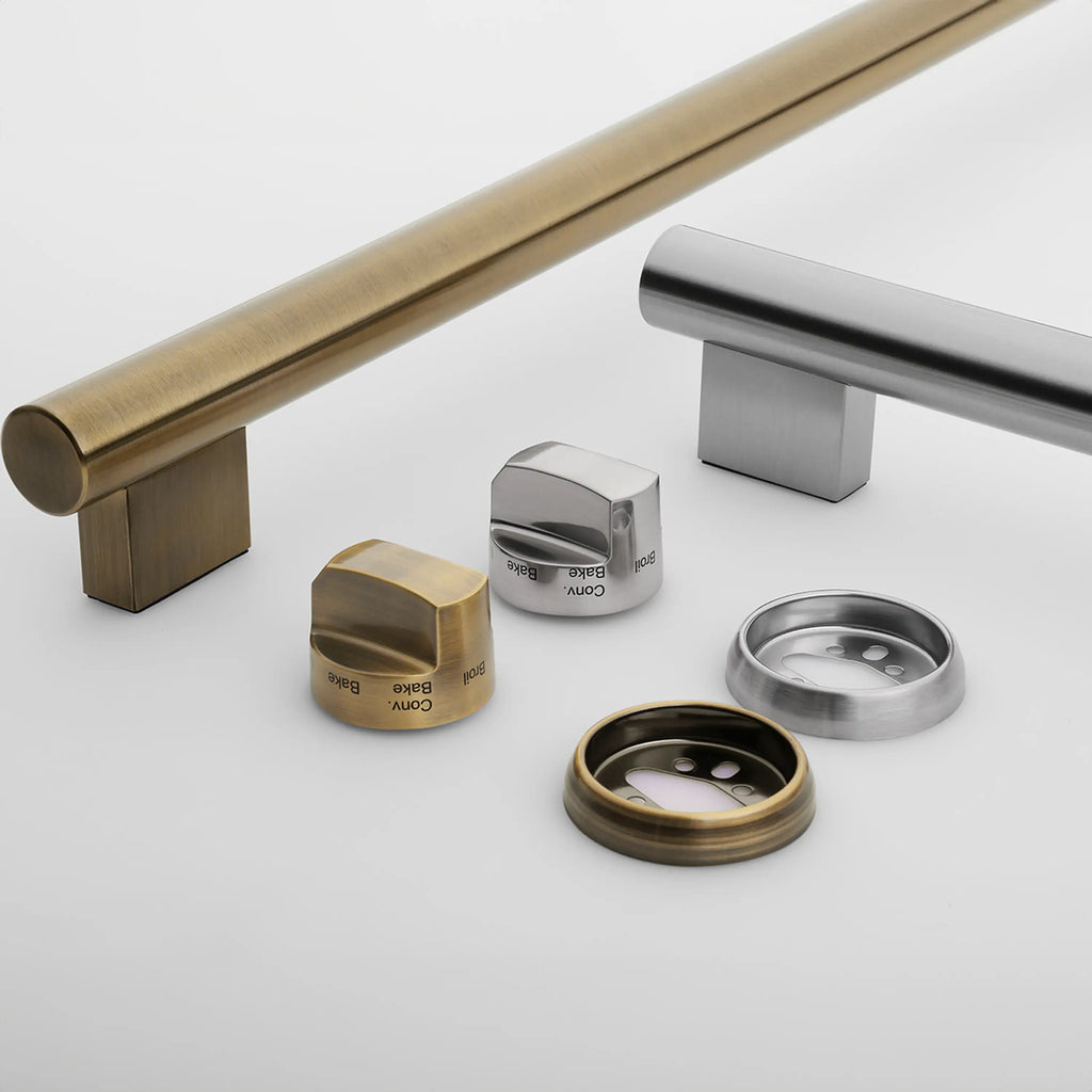 Note: This range includes brass and stainless steel knobs/handle in the box. Some assembly is required to switch to your desired trim finish.