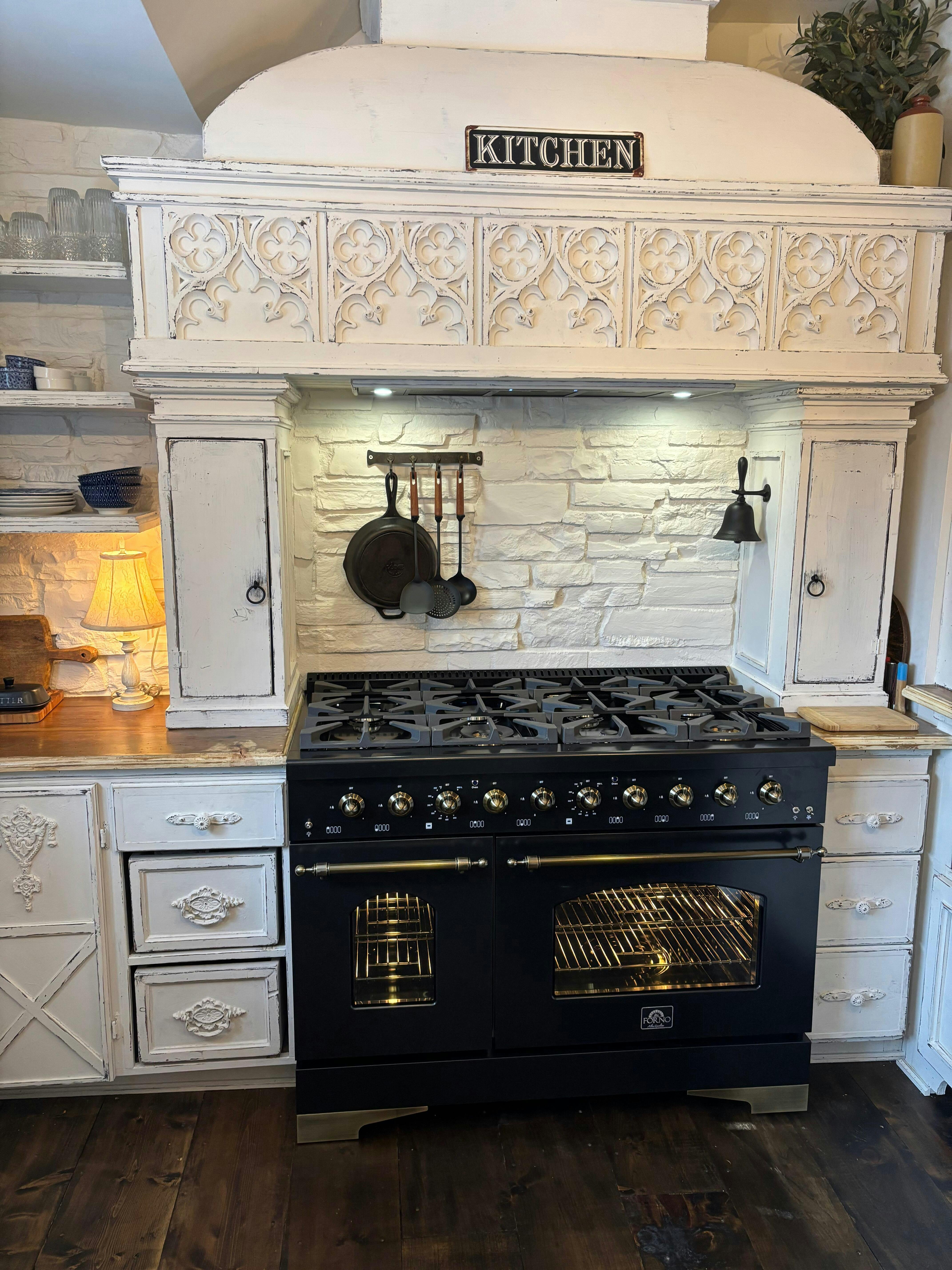 The Forno Donatello 30-inch white induction range harmonizes functionality with the precision of induction cooking. Customize your look effortlessly with two sets of interchangeable handles and knobs, switching between antique brass for a traditional touch or stainless steel for modern flair. The cooktop boasts four powerful induction elements totaling 8,100 watts, ensuring fast and precise cooking. The 5.0 cu.ft. speckled blue enamel oven features two racks with six adjustable levels, enabling versatile cooking for multiple dishes simultaneously. With Air Fry functionality, achieve crispy and delicious results effortlessly for healthier cooking options. This range caters to all cooking needs with its powerful cooktop and versatile oven, delivering quality and performance without the high price tags. Lower your cost of living with Forno.