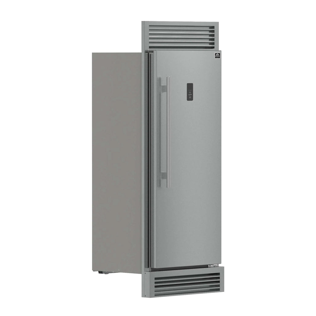 The Forno Fortezza 32 Inch Right-Swing Convertible Refrigertor/Freezer with Trim Grille gives you flexible cold storage as either a refrigerator or a freezer. With Total No Frost cooling and a digital control panel, it keeps temperatures consistent without ice buildup. When used as a freezer, it ranges from -24°C to -14°C; in refrigerator mode, it holds a steady 0°C to 8°C. Adjustable shelving, door storage, and a galvanized steel-coated interior offer flexibility and durability. With counter-depth dimensions and a stainless steel finish, it’s a clean, modern fit for any kitchen.