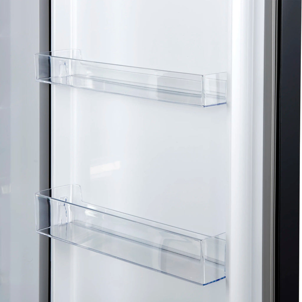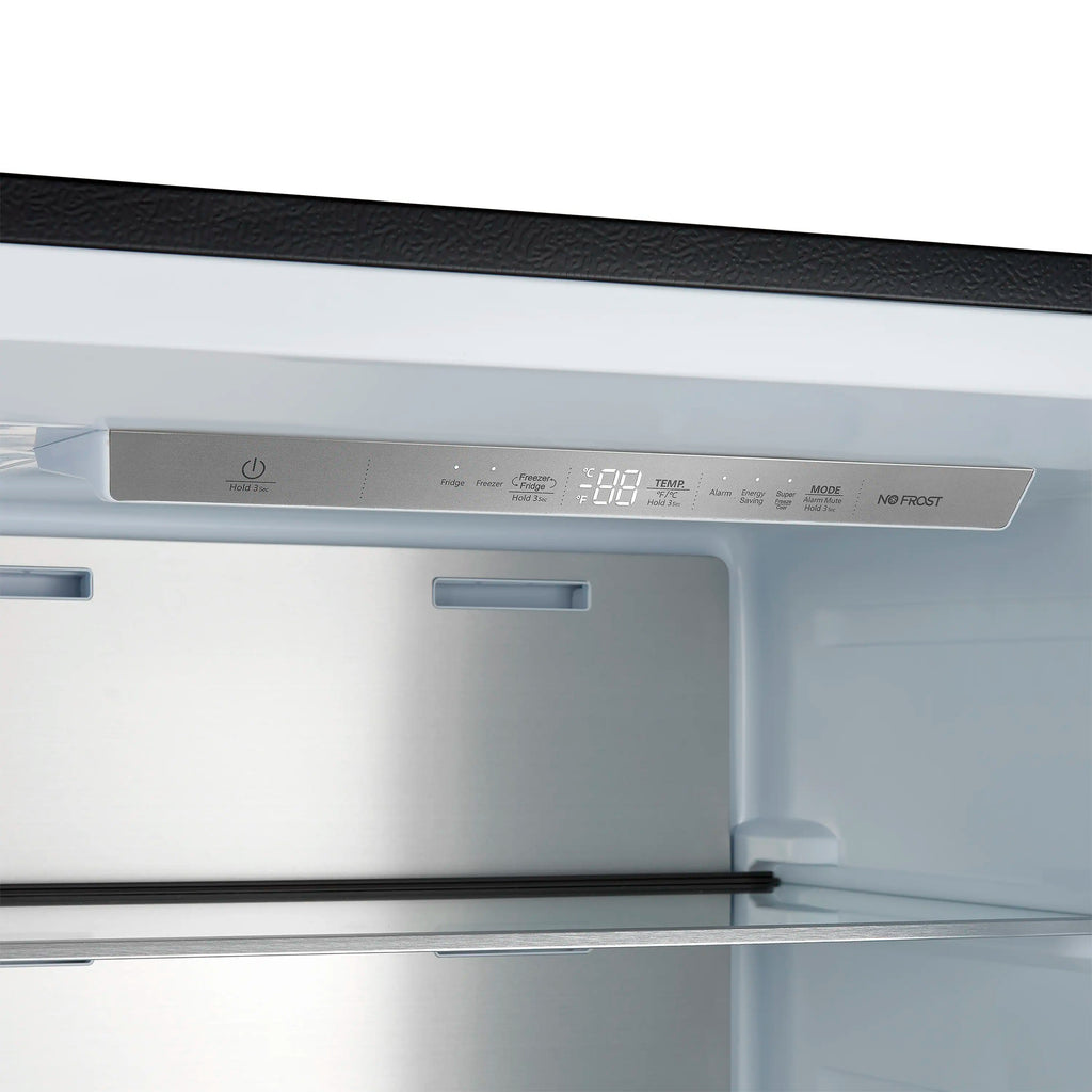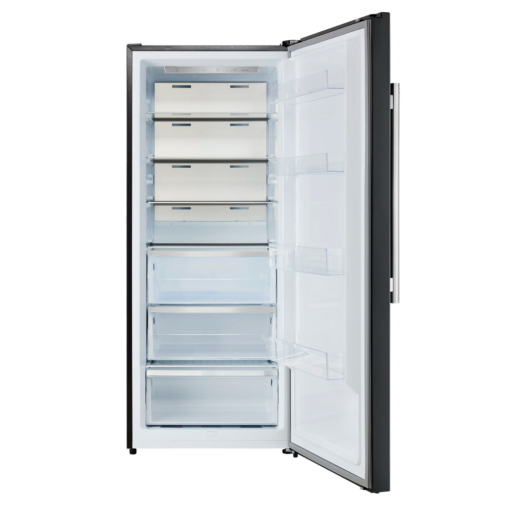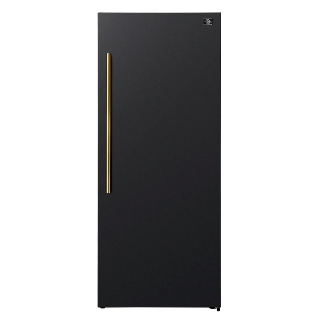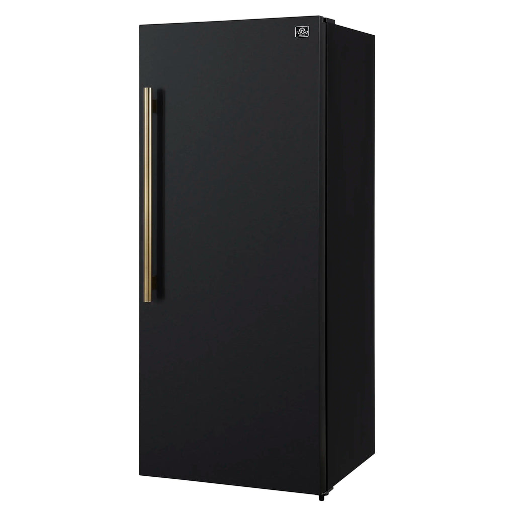 The Forno Maderno 28-inch Convertible Refrigerator/Freezer combines style and performance with a 13.6 cu.ft. storage capacity. Featuring Total No-Frost Technology, it eliminates the need for manual defrosting, while the Metal Multi-Airflow system ensures consistent cooling throughout. Inside, 3 glass shelves and 3 drawers with silver trims offer organized storage, complemented by door bins for added functionality. The swing door design and touch control panel make everyday use simple and intuitive. Finished with durable VCM doors and a metal back panel, and backed by an Energy Star Certification, it delivers both elegance and long-term efficiency. Available in Black and featuring antique brass handles.