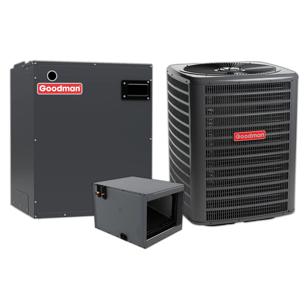 The Goodman GLZSM4 is a 2.5 Ton split system heat pump delivering up to 15.2 SEER2 / 14.3 SEER2 / 7.8 HSPF2 efficiency with SmartShift technology for quiet, reliable defrost. Features a high-efficiency compressor, enhanced aluminum fin coils, and single-speed PSC condenser fan motor. Ships fully charged for 15' of tubing length. Built in a heavy-gauge galvanized steel cabinet. AHRI Certified and ETL Listed.