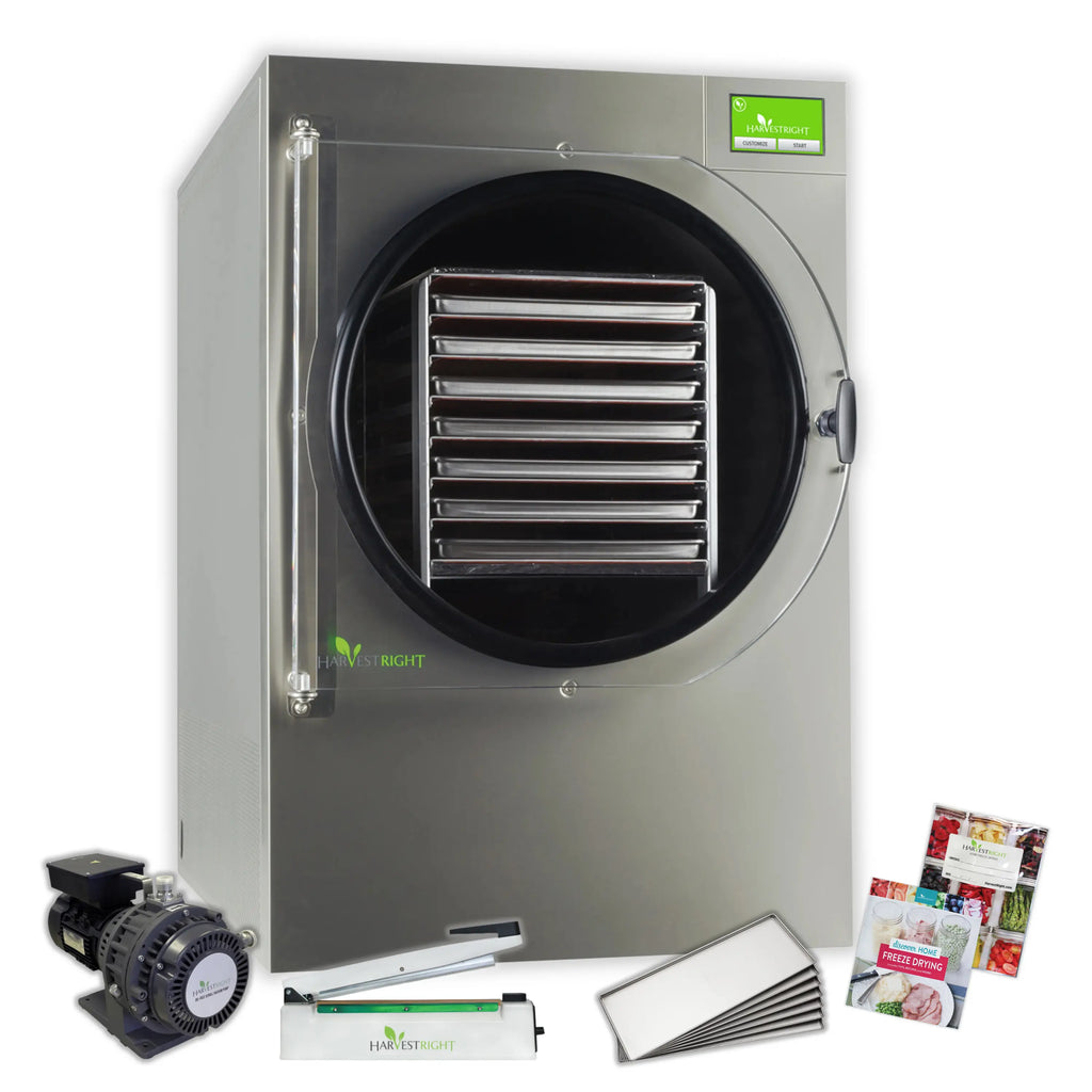 Harvest Right Home Freeze Dryer with with Oil Free Pump, 7 Tray & Mylar Starter Kit in Stainless Steel, X-Large (N-HRFDXLSS-PP, SP-GW11060)