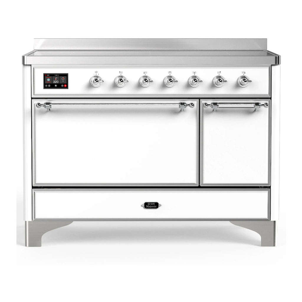 ILVE Majestic III 48-Inch Induction Range with 6 Induction Elements and Solid Door Electric Oven in White with Chrome Trim (UMIB48QNR3WHC)