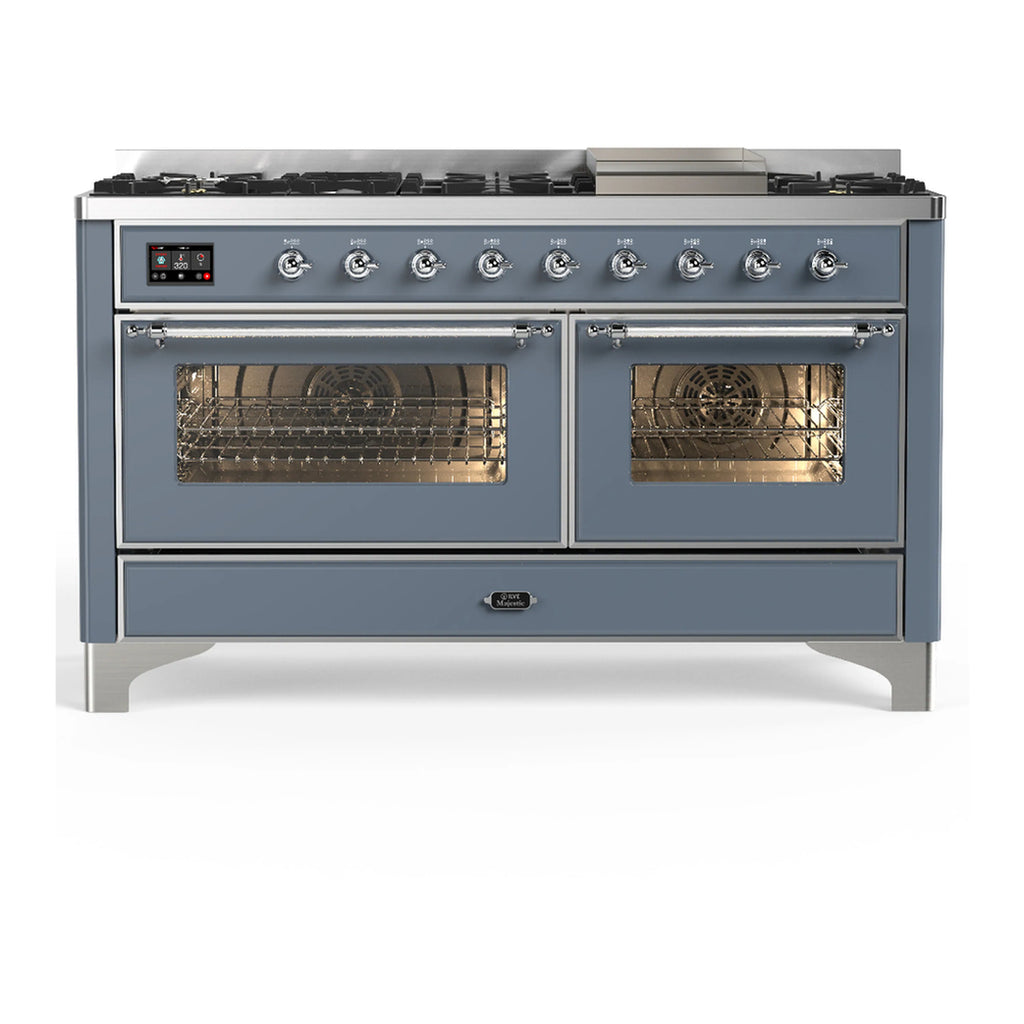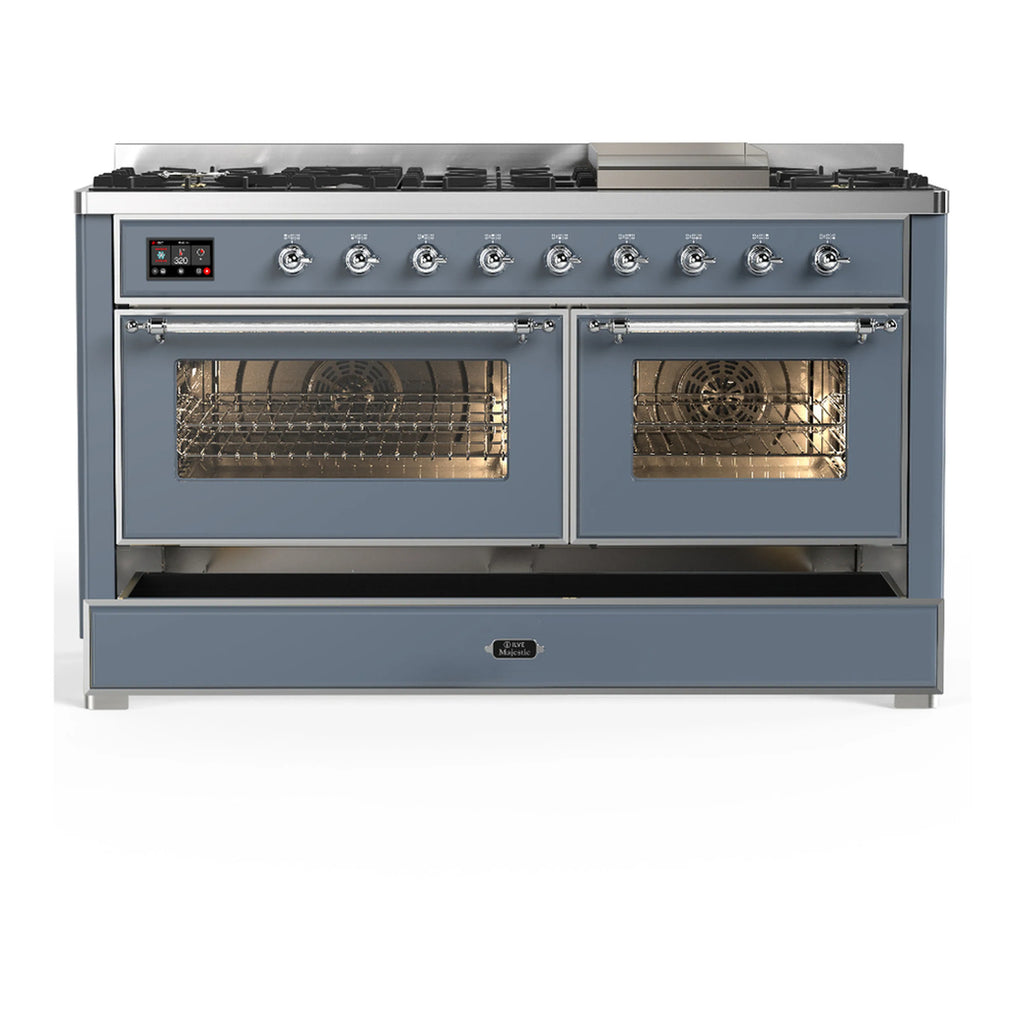ILVE Majestic III 60-inch Dual Fuel Range with 7 Natural Gas Burner, Griddle and Triple Glass Door Electric Oven in Blue Grey with Chrome Trim (UM60FNR3BGC)