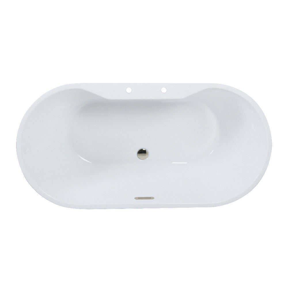 Transform your bathroom’s contemporary decor with the luxurious comfort of a Kingston Brass freestanding bathtub. Featuring a clean, modern, and minimalist design, this tub includes an integral faucet deck, predrilled at 7” center to center for easy installation, eliminating the need for extra space for a freestanding faucet. Despite its compact 55-inch size, its ergonomic design and extra depth offer a delightful spa-like experience. Crafted from durable, scratch-resistant acrylic, this tub will enhance your home’s beauty for years to come. The elegant glossy finish on both the interior and exterior adds a touch of high design to your space. This freestanding bathtub is the perfect choice for those seeking luxury and functionality in their bathroom.