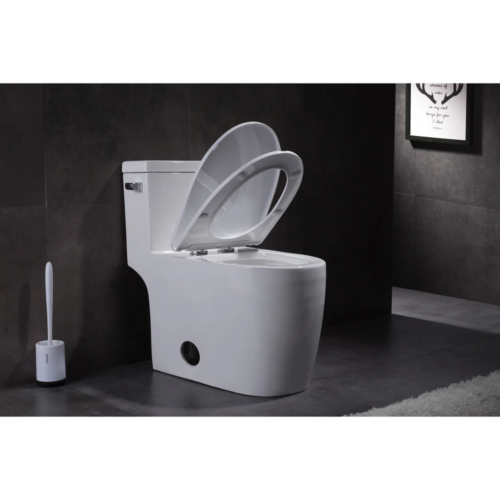 This Kingston Brass Courtyard one-piece siphonic single flush elongated toilet is inspired by sleek European minimalism, never sacrificing on performance or look. The toilet is a perfect combination of optimal performance and elegant design. Made from porcelain material, the toilet is designed to be stain and abrasion-resistant. Its compact design makes it an easy-to-install, easy-to-use component for your bathroom. With a flush lever actuator on the side of the tank, the toilet is convenient and offers an exceptional 1.28 GPF flush to help conserve water with each use.