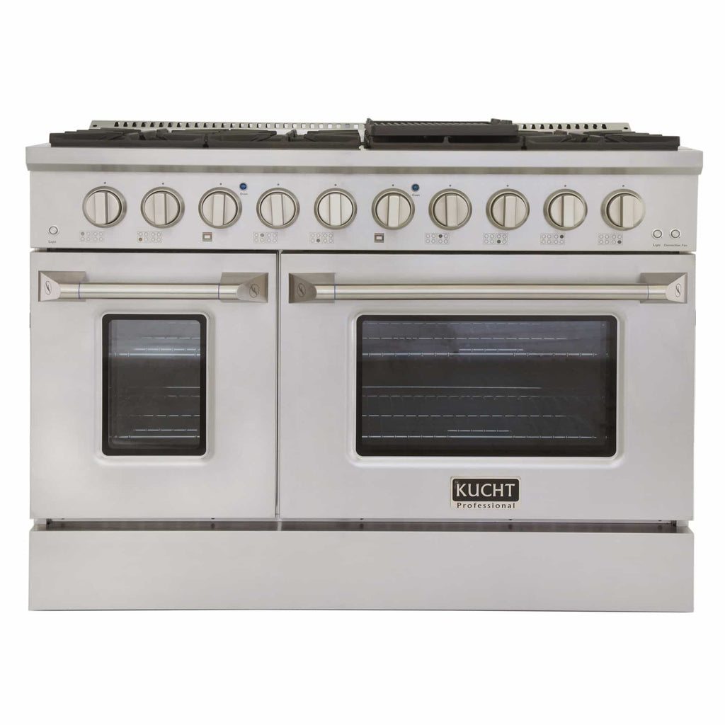 KUCHT Professional 48 in. 6.7 cu. ft. Range with Sealed Burners, Griddle/Grill and Two Ovens - One Convection - in Stainless Steel with Silver Oven Door
