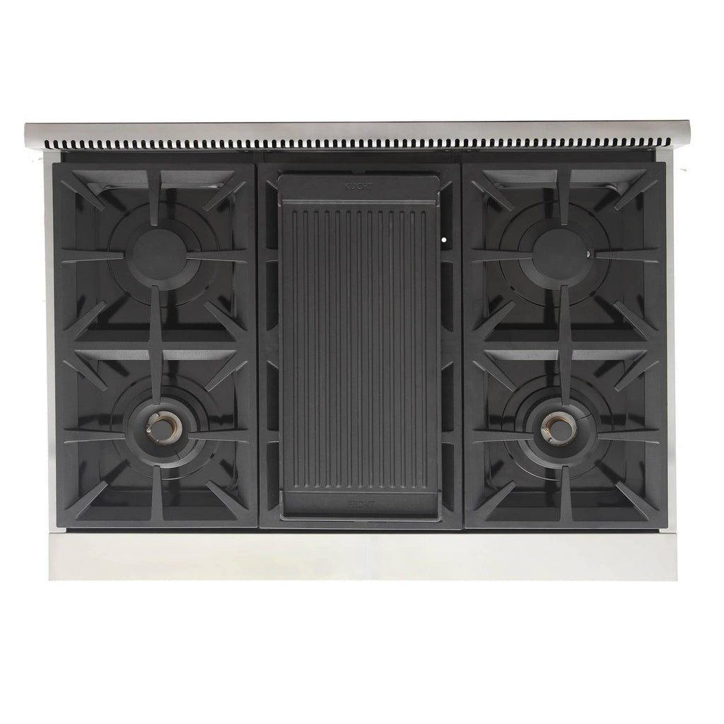 This high powered model was designed to function with Kucht’s Ignition, using an auto-reignition system that ignites every time with ease, and automatically reignites any time a flame burns out. The range top’s continuous grates covers the 4 burners and allows you to move your kitchen utensils safely and with ease. You can slide the heaviest pots and pans on the rails without even having to lift them.