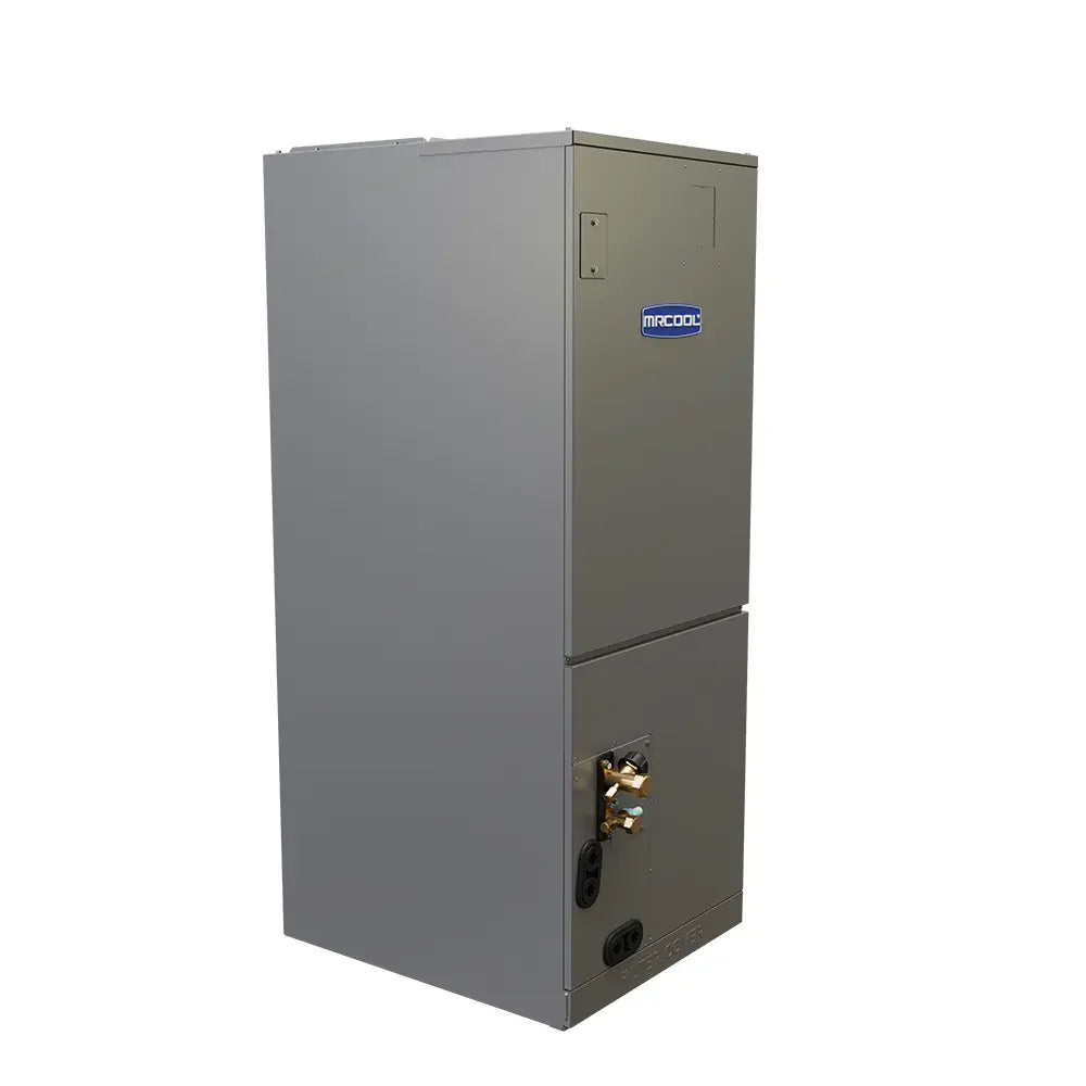 The 24K MRCOOL® DIY Hybrid™ Air Handler is a smart, flexible solution for heating and cooling spaces up to 1,000 square feet. Designed for easy pairing with MRCOOL® DIY condensers, it allows for a seamless, do-it-yourself installation—ideal for replacing older HVAC systems. Its painted galvanized steel exterior ensures durability and long-lasting performance, while the built-in self-diagnostics panel simplifies troubleshooting by quickly identifying error codes and reducing downtime. This air handler supports multiple installation configurations—including upflow, downflow, and horizontal left or right—making it adaptable to a variety of home layouts. It uses R-454B refrigerant, an environmentally conscious option that offers high performance with reduced environmental impact. For added warmth during colder months, an optional heat kit can be included for increased year-round comfort and versatility. The unit also comes equipped with the MRCOOL® Smart Wi-Fi Thermostat, allowing easy control via the touchscreen or the MRCOOL® app. This smart feature makes it simple to customize your indoor climate and maintain optimal comfort with minimal effort, whether you’re home or away. Backed by a 5-year parts warranty, the 24K MRCOOL® DIY Hybrid™ Air Handler combines energy efficiency, convenience, and reliability. It’s a cost-effective, modern upgrade for homeowners seeking greater control, performance, and peace of mind in their home HVAC systems.