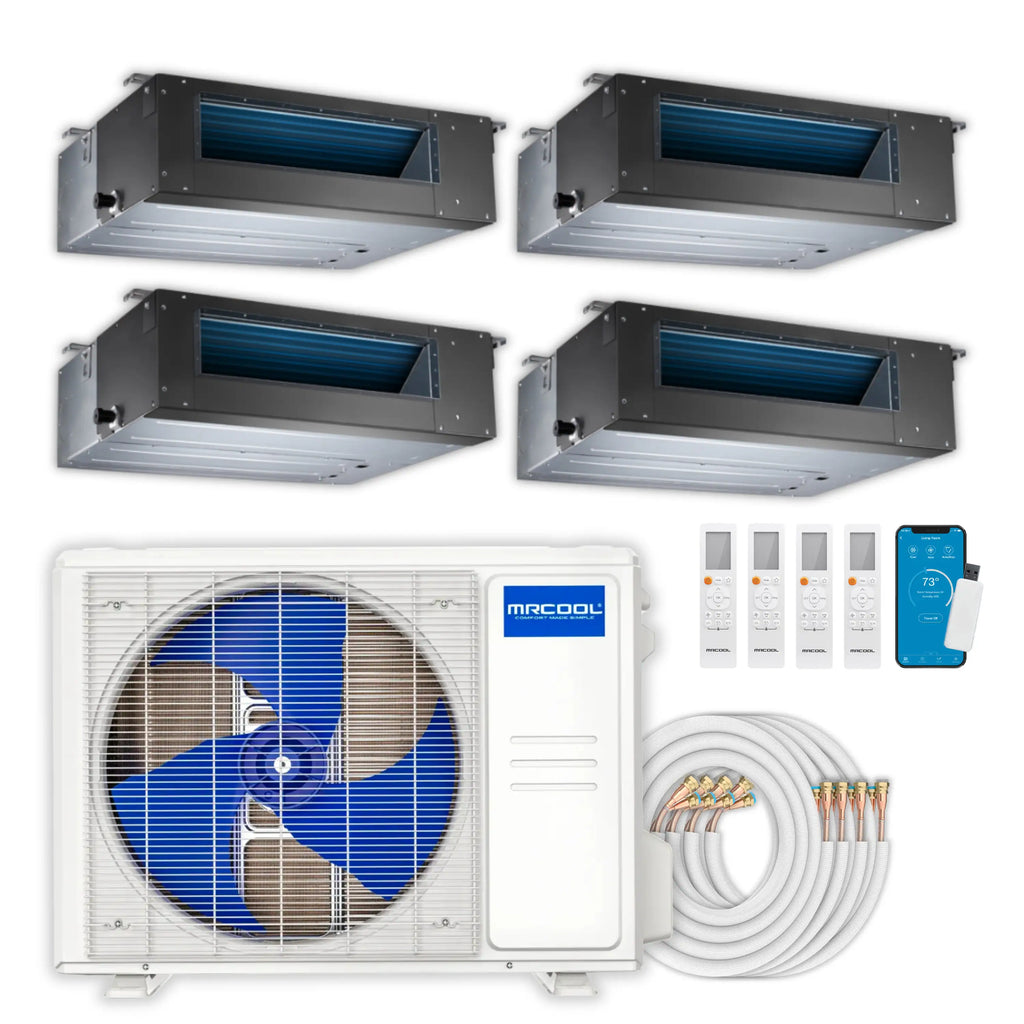 Featuring cutting-edge inverter technology, the system provides exceptional energy performance, with SEER2 ratings up to 24 and HSPF2-4 up to 9.5. It operates reliably even in extreme outdoor conditions, functioning in temperatures as low as 5°F to keep your home comfortable year-round. Compatibility with a variety of MRCOOL indoor units—including wall-mounted, ceiling cassette, and concealed duct options—means it’s easy to customize the setup to suit your home’s layout and aesthetic. Smart control options enhance everyday convenience, offering seamless operation through the MRCOOL SmartHVAC app, included remote control, or voice commands via Amazon Alexa and Google Assistant.
