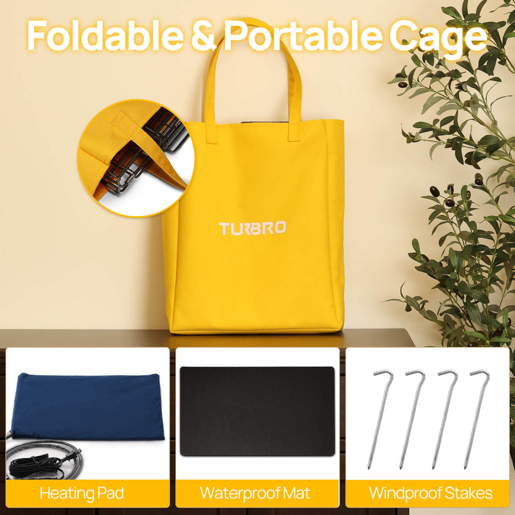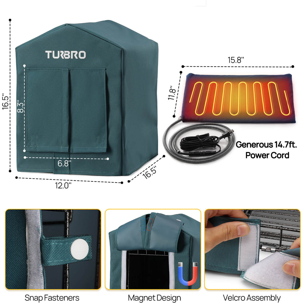Keep your feline friends cozy and safe year-round with the TURBRO Neighborhood CH17A Heated Cat House. Designed with insulated PVC and a 14.7-ft power cord, it includes a waterproof Oxford cloth exterior, a heated pad, and a raised base to shield pets from cold and moisture. Its sturdy iron frame, windproof stakes, and magnetic door flaps ensure warmth and stability—even in rough weather. Easy to assemble, store, and transport in the included bag, this lightweight shelter is ideal for porches, barns, or garages.