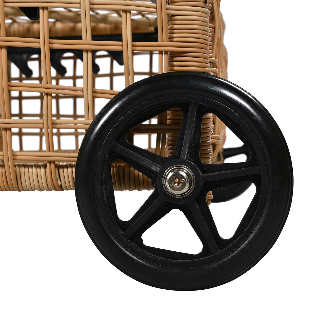 Adjustable rattan lounge chair with 5-position backrest, removable cushion & wheels—perfect for poolside, backyard, or garden relaxation.