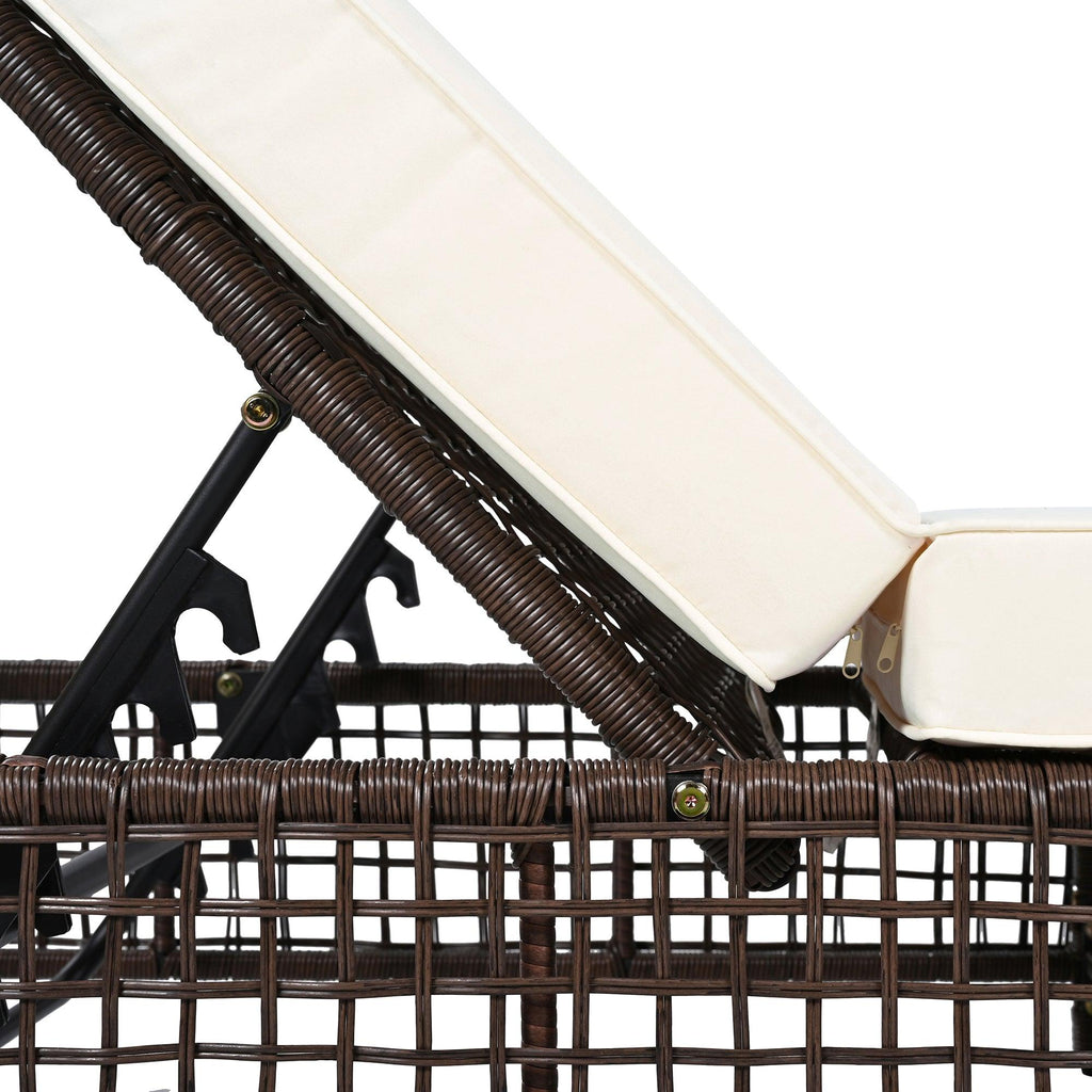 Parrot Uncle Outdoor Lounge Chair, Patio Chaise Lounge with 5-Position Backrest, Rattan Outdoor Lounge Chair with Cushion and Wheels for Poolside, Backyard, Garden