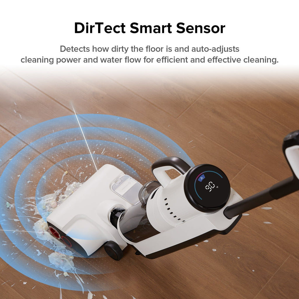 The design includes multiple tool attachments for crevices, upholstery, tight corners, and stairs, so you’re equipped for both full-floor cleaning and detailed spot work. Its “DirTect™ Smart Sensor” detects how dirty floor areas are and adjusts water flow, suction, and detergent dispensing to match. LED indicators and voice alerts help you stay informed about tank levels, mode changes, or maintenance needs. With a large clean/dirty water tank, efficient battery usage, and strong edge-to-edge roller coverage, the Dyad Pro Combo aims to replace several cleaning tools in one consolidated package.