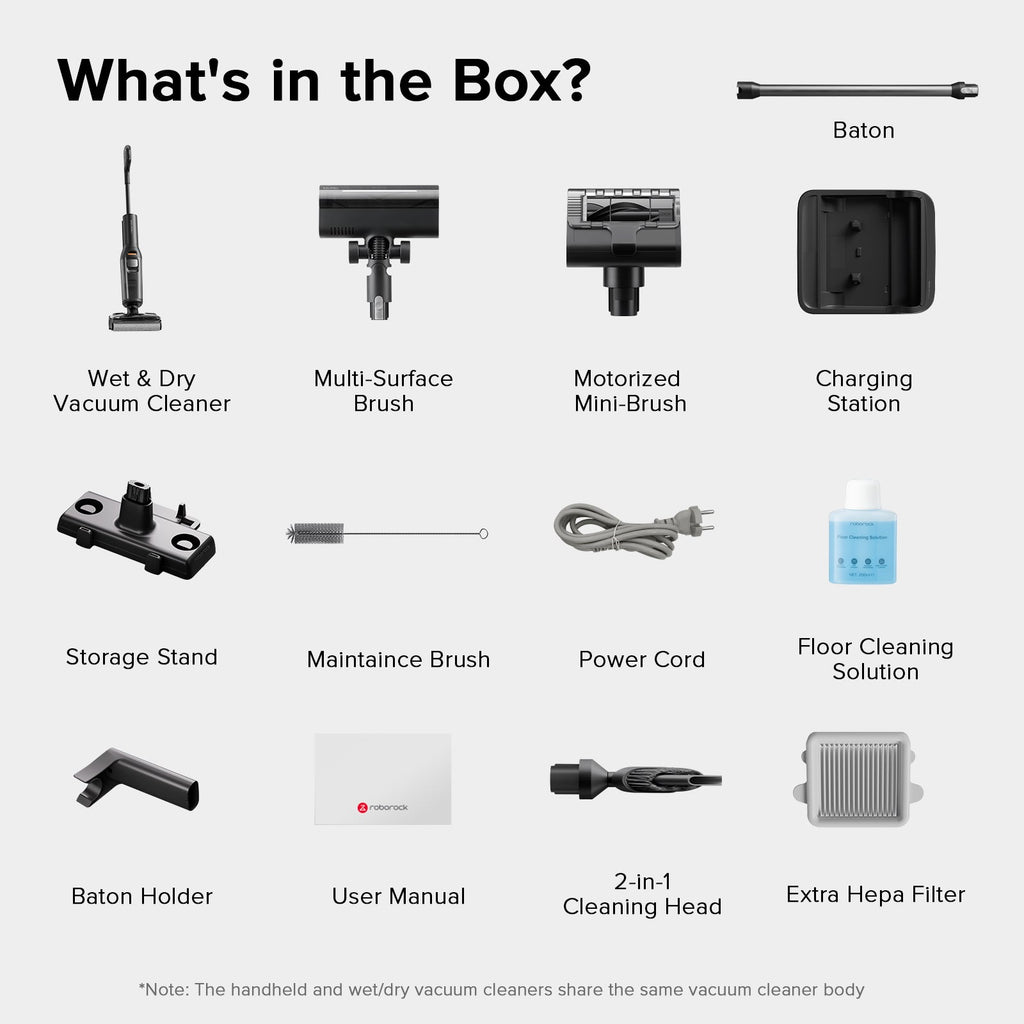 | Battery Life | Wet & Dry Cleaner: 60min (Eco Mode); Stick Vacuum: 65mIn (Eco Mode with 2-in-1 cleaning head on) |