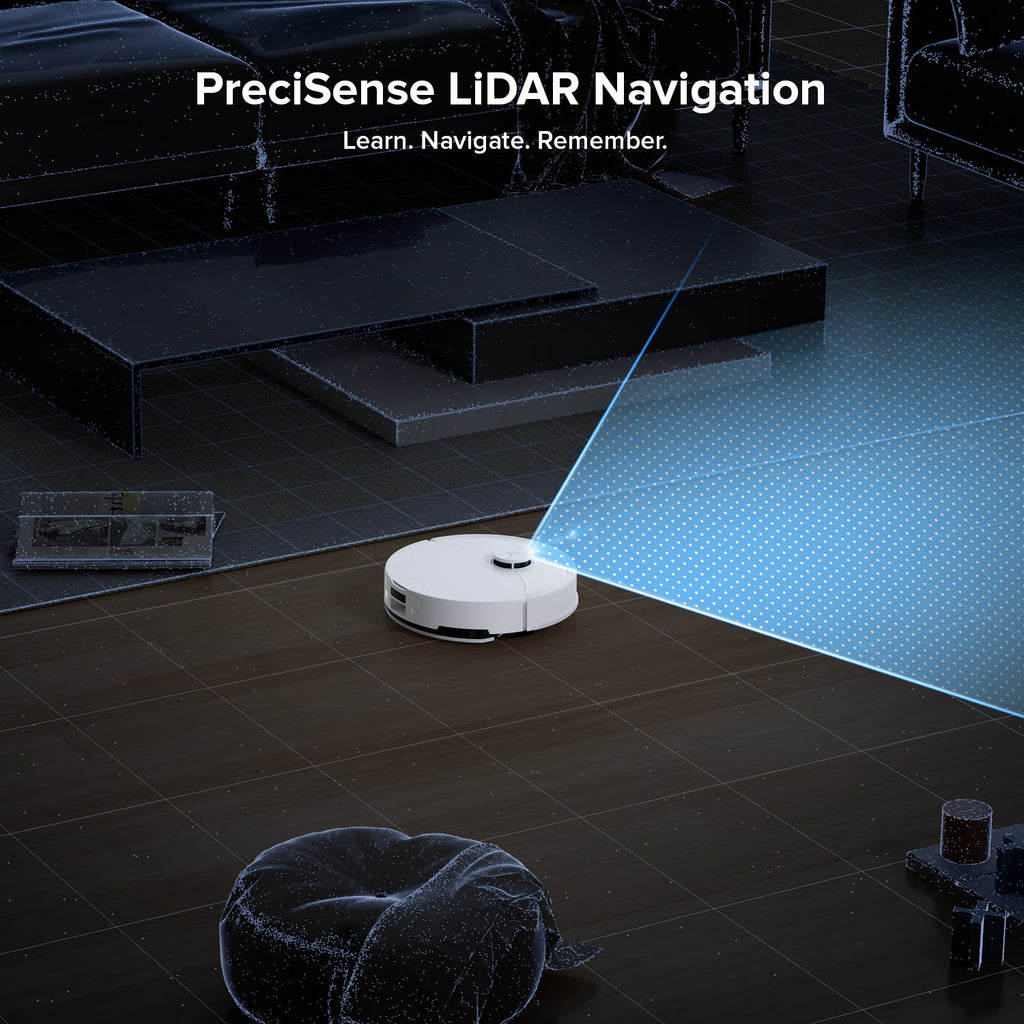 Navigation is powered by PreciSense® LiDAR with ReactiveTech obstacle avoidance, allowing it to map rooms efficiently, avoid furniture or clutter, and adapt to household layouts. It supports multi-level mapping, letting users save maps for multiple floors. In Eco or standard modes, battery life is long enough for cleaning large homes in one session without frequent recharging. App control allows scheduling, managing zones/no-go areas, carpet boost, and other customizable settings to match your home’s needs.