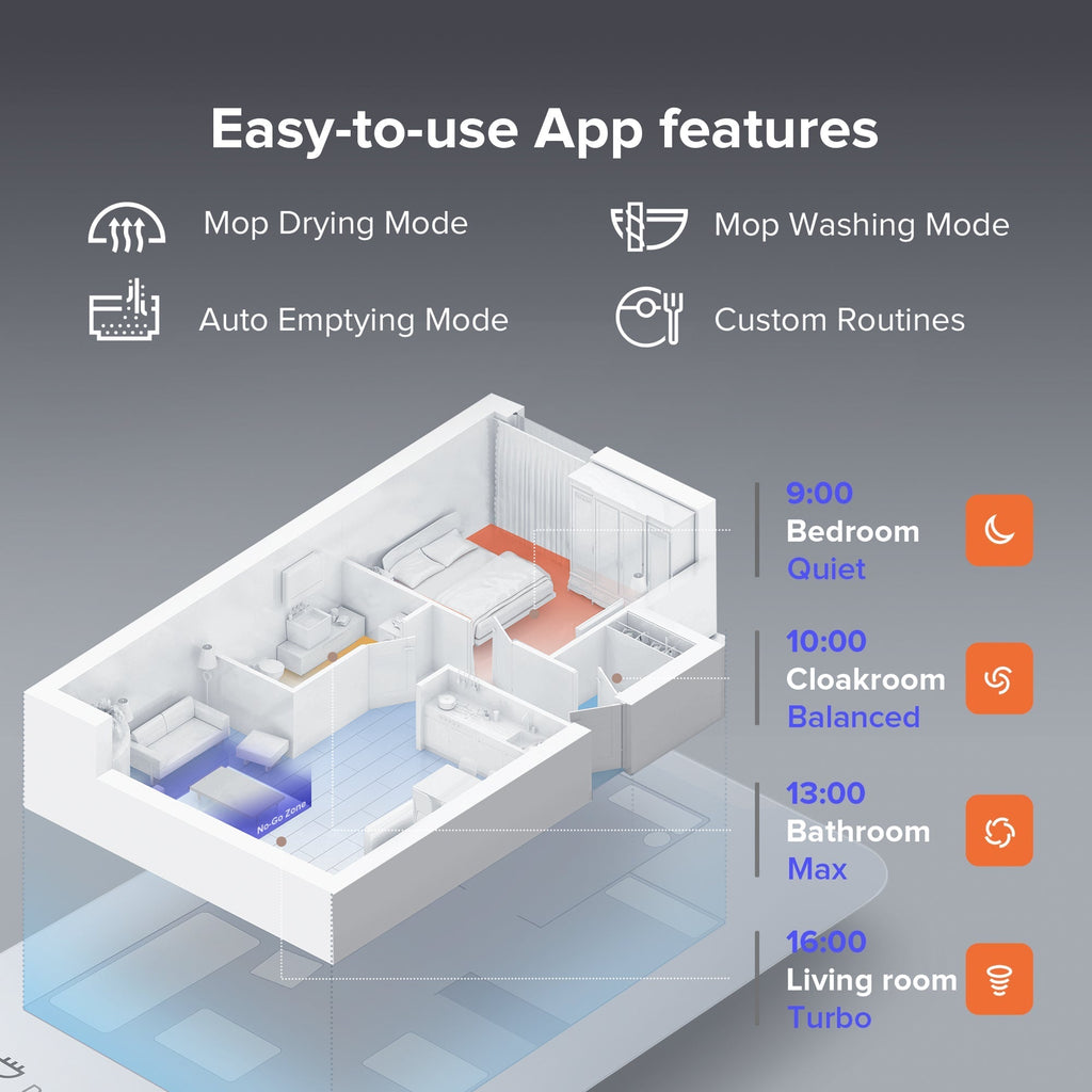 The unit includes VibraRise mopping which scrubs effectively while lifting on carpets, allowing it to mop hard surfaces and vacuum carpets in one pass without wetting soft surfaces. The dock takes care of much of what typically makes robot vacuums a chore: it cleans the mop, dries it, empties the dustbin, refills water, and helps reduce odors. Obstacle detection and Reactive Tech navigation guide the robot around furniture, cords, and other common obstacles. With high suction and consistent cleaning across surfaces, the S8 Max Ultra delivers robust performance in a package designed to reduce maintenance effort.