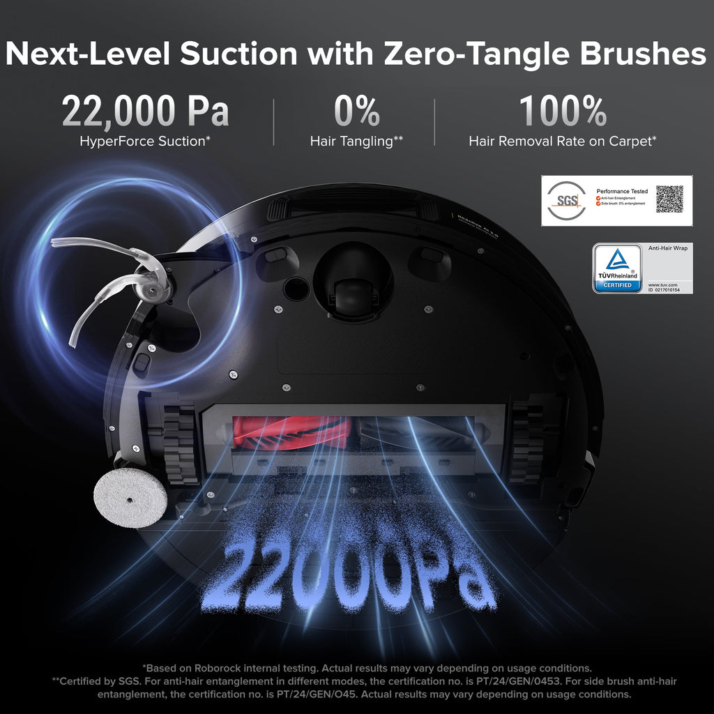 Anti-Tangle Brush System: Main and side brushes designed to resist hair wrapping and minimize maintenance.