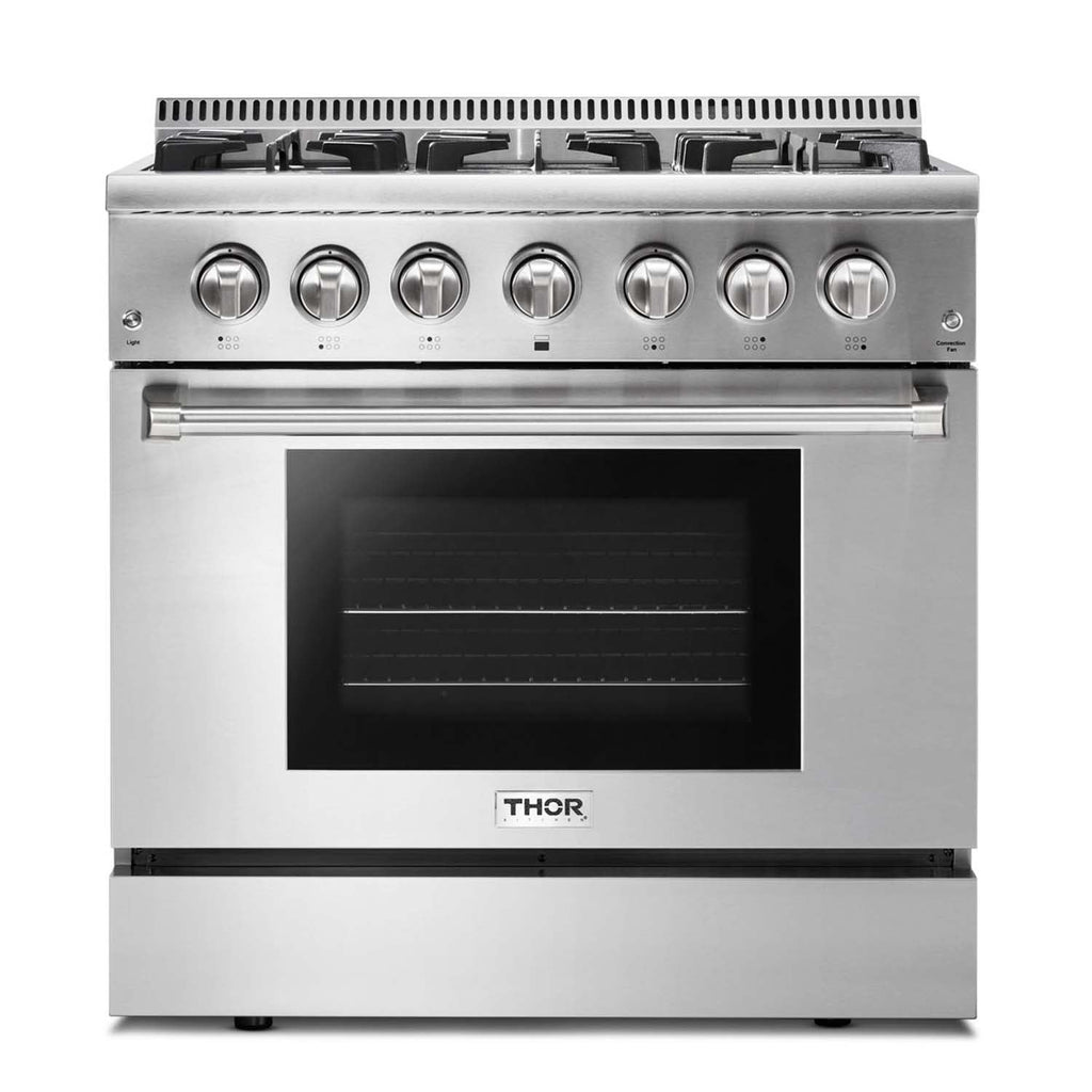 THOR Kitchen offers the power and performance of a premium professional appliance at a practical price. The THOR Kitchen 36 Inch Dual Fuel Range is a stainless-steel machine that is designed with professional features and functionality.