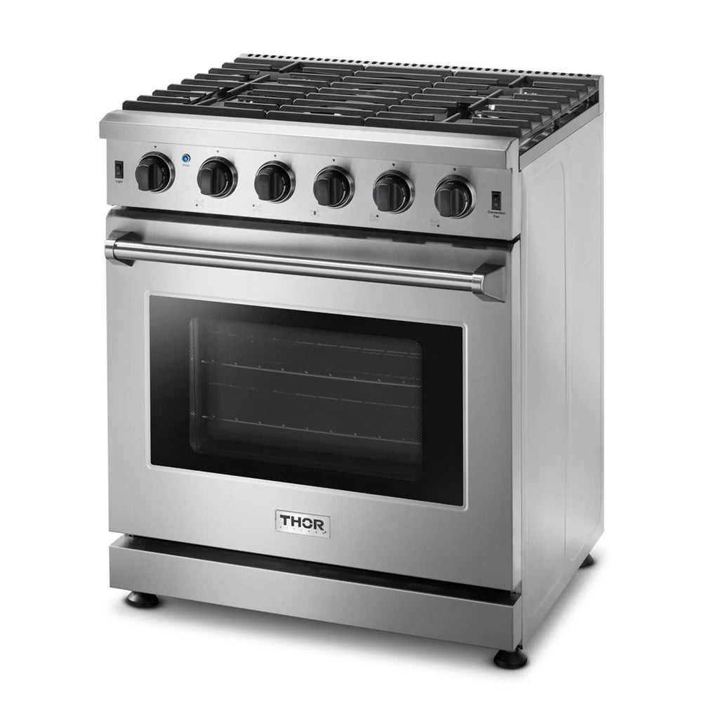 THOR Kitchen offers the power and performance of a premium professional appliance at a practical price. The THOR Kitchen 30 Inch Gas Range is a stainless steel machine designed with professional features and functionality. With powerful burners, continuous grates and a commercial convection fan, this range takes everything from prime rib to snickerdoodles to the next level. #cooklikeagod