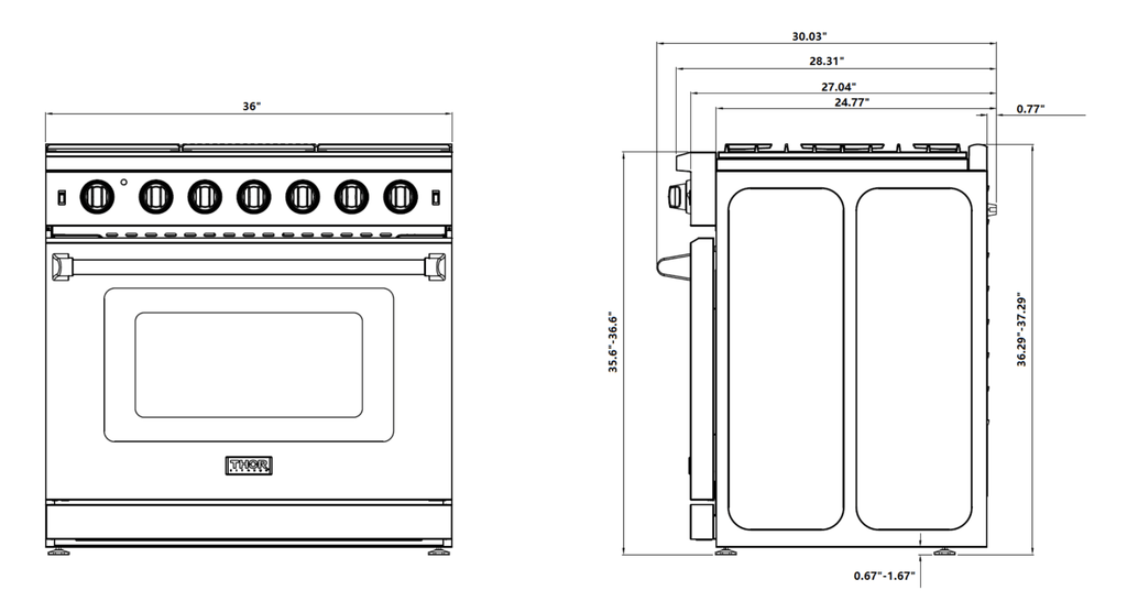 THOR Kitchen offers the power and performance of a premium professional appliance at a practical price. The THOR Kitchen 36 Inch Gas Range is a stainless steel machine designed with professional features and functionality. With powerful burners, continuous grates and a commercial convection fan, this range takes everything from prime rib to snickerdoodles to the next level. #cooklikeagod
