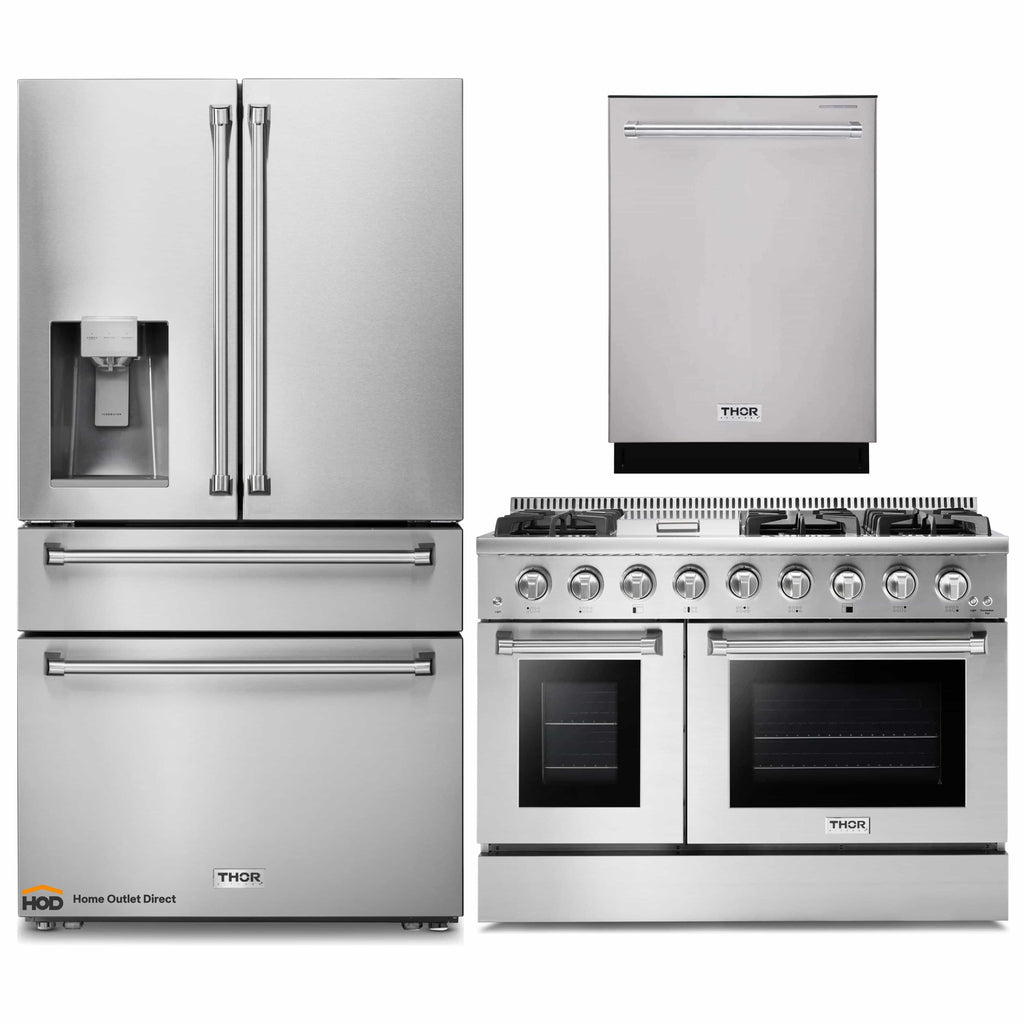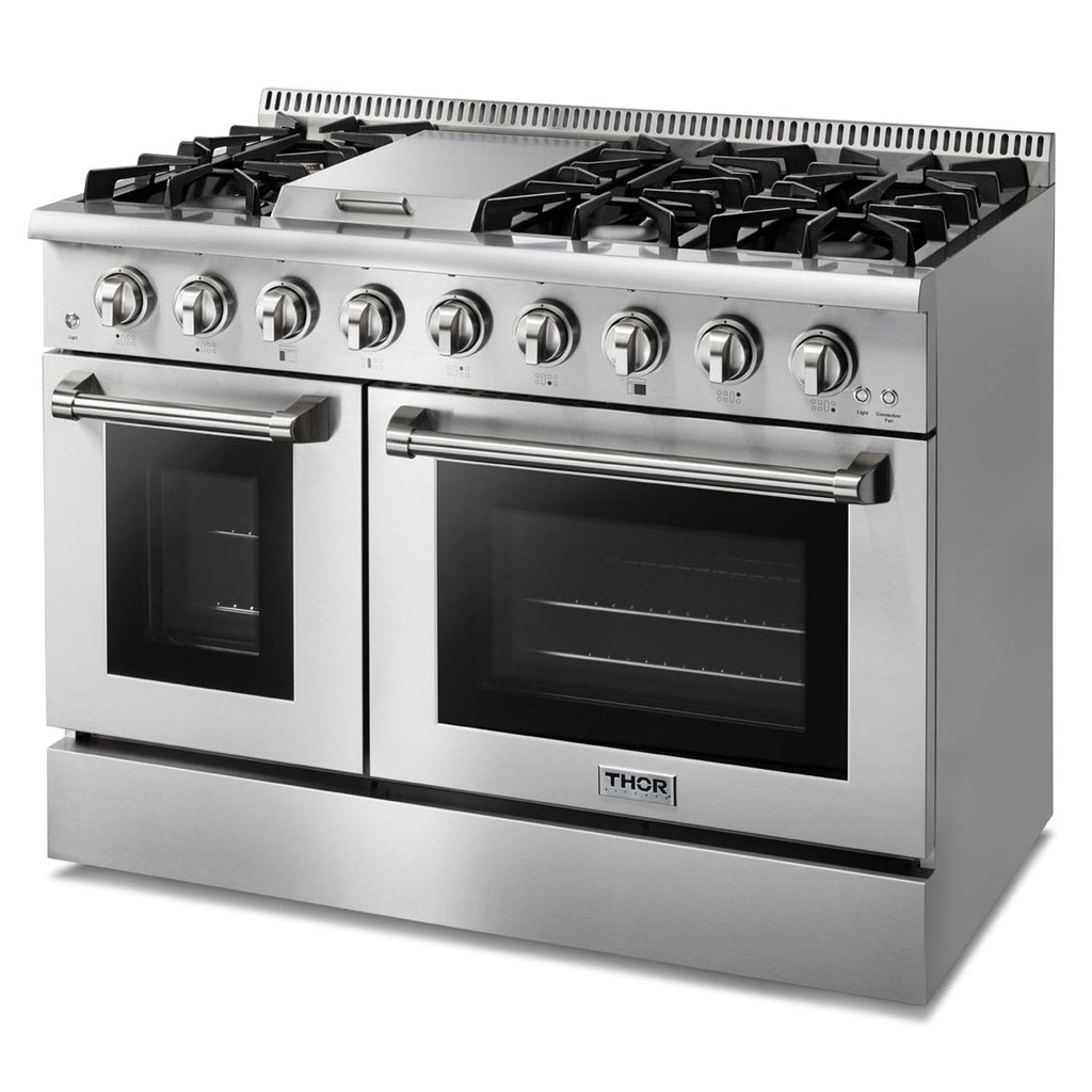 THOR Kitchen offers the power and performance of a premium professional appliance at a practical price. The THOR Kitchen 48 Inch Professional Gas Range is a stainless-steel machine that is designed with professional features and functionality. This powerful range has 6 burners including three 18,000 BTU single burners and three 15,000 BTU dual burners giving you the flexible cooktop you’ve been dreaming about. Oh, and did we mention the high intensity 15,000 BTU griddle? #cooklikeagod