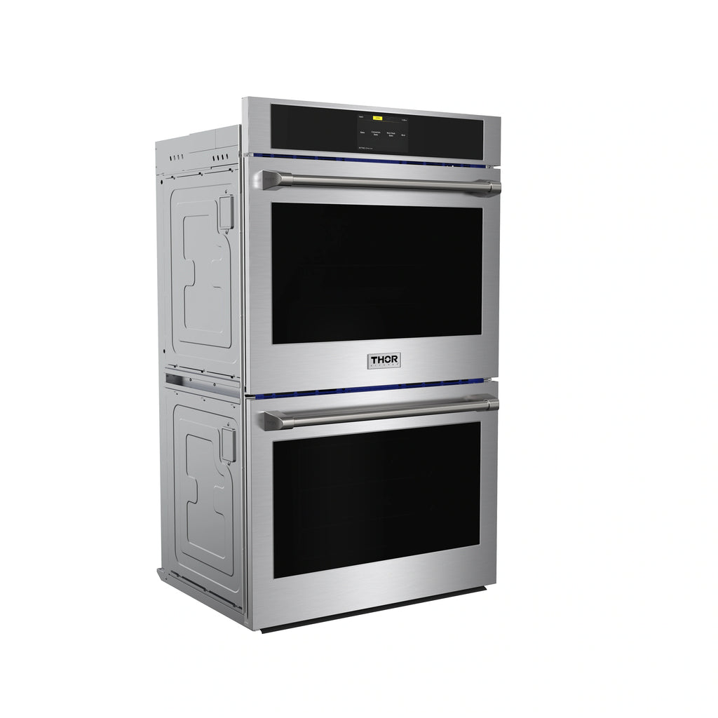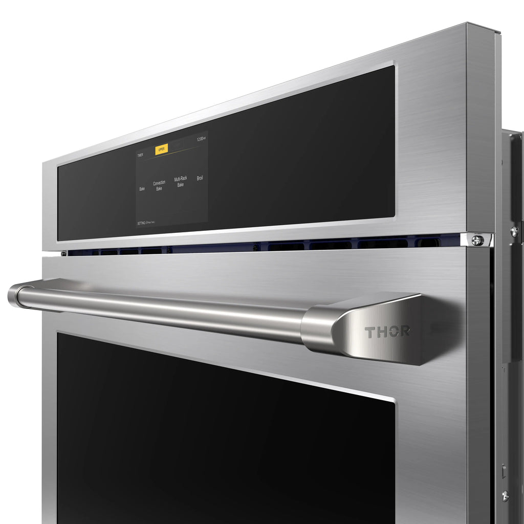 The THOR Kitchen 30" Professional Electric Double Wall Oven with Air Fry and Self-Clean brings professional-grade cooking power and modern convenience to your kitchen. With a spacious 9.6 cu. ft. capacity, advanced cooking modes, and premium features like telescopic racks, touch controls, and a self-cleaning function, this oven makes it easy to prepare everything from weeknight meals to holiday feasts with precision and style.